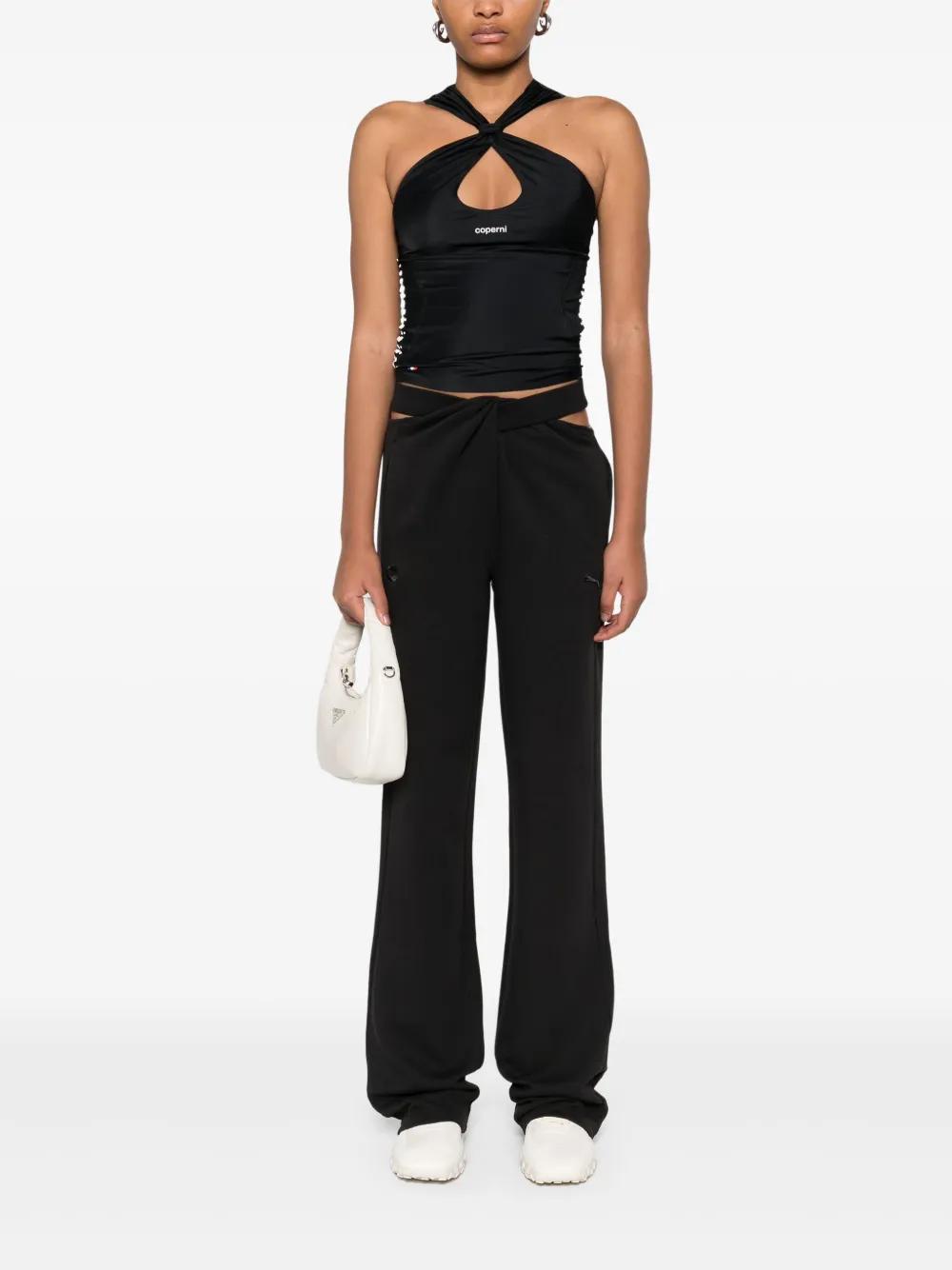 black cotton silver-tone hardware gathered detailing asymmetric neck sleeveless straight hem