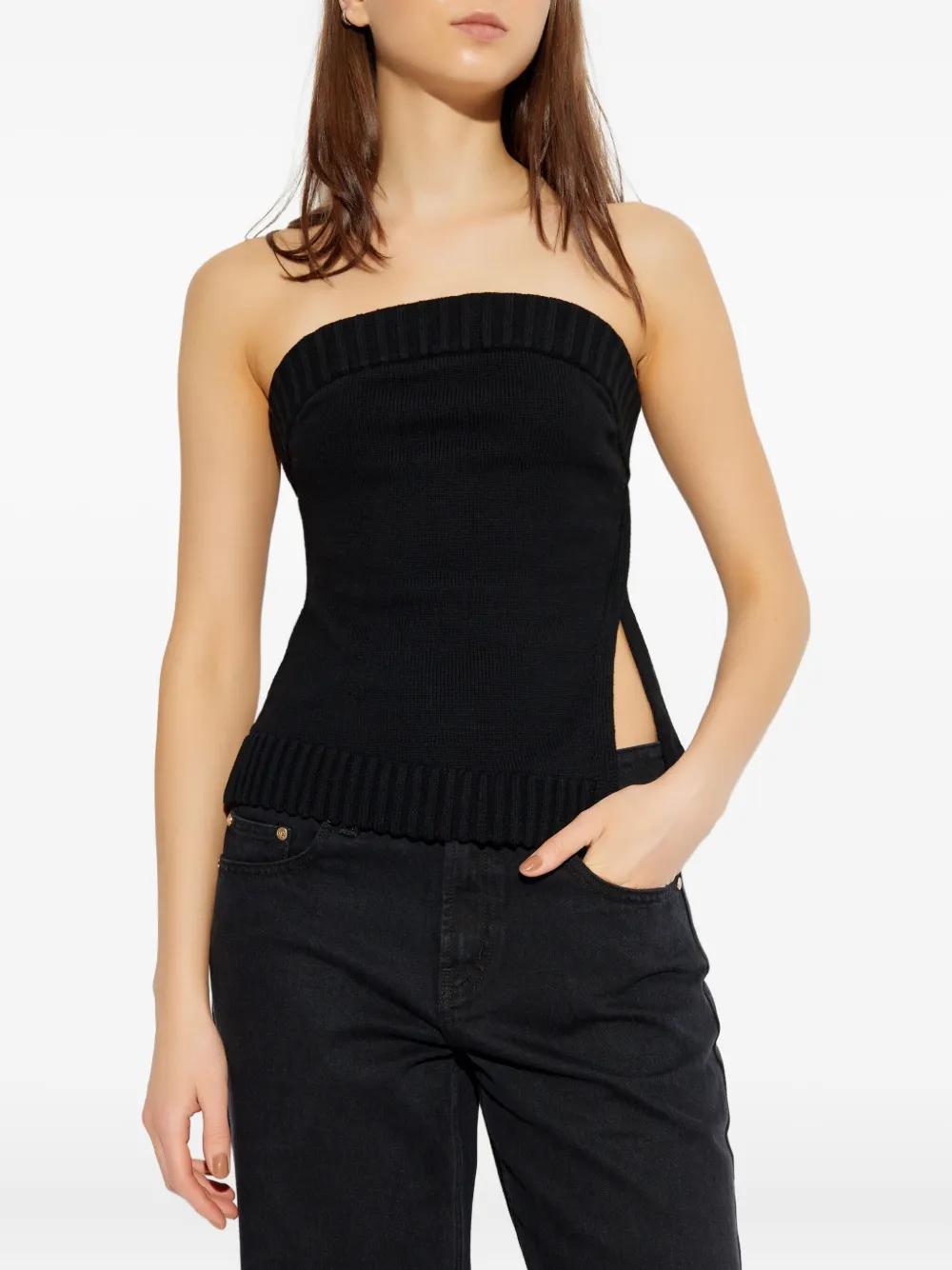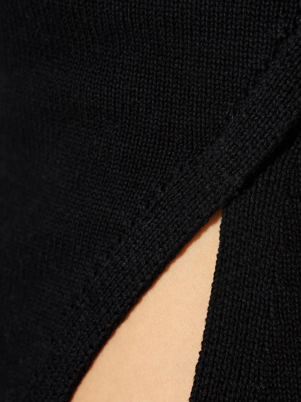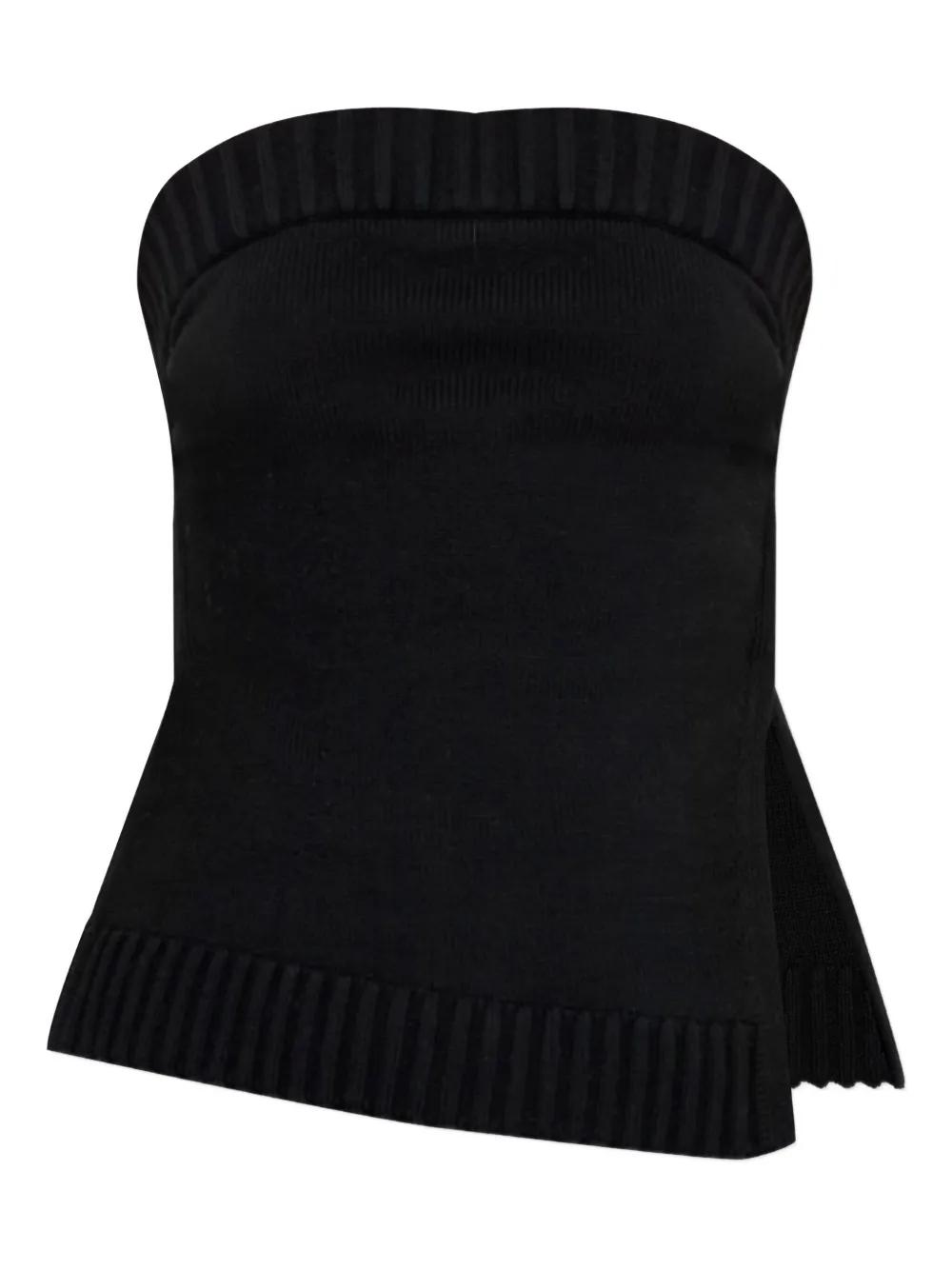 black merino wool fine knit stud detail at the hem crew neck sleeveless straight hem