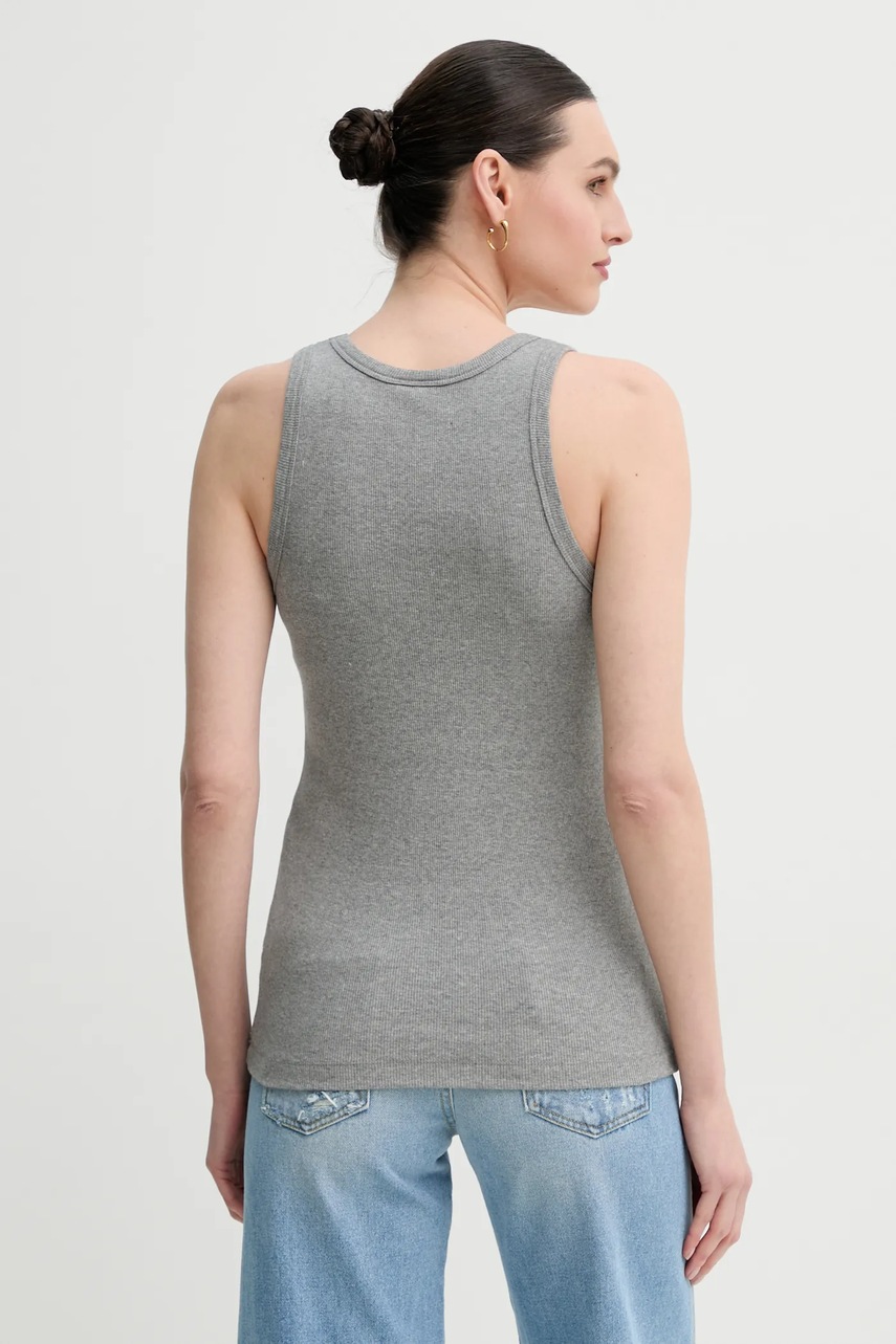 - Ten produkt został uszyty z certyfikowanej bawełny organicznej, która jest uprawiana i zbierana z roślin niezmodyfikowanych genetycznie, bez użycia chemicznych nawozów i pestycydów. - Dopasowany, podkreślający sylwetkę fason. - Okrągły, prążkowany dekolt. - Nieregulowane ramiączka nie zsuwają się z ramion zapewniając komfort podczas aktywności. - Model wykonany z dzianiny o strukturze prążków, która jest niezwykle elastyczna i miękka, przez co dobrze dopasowuje się do sylwetki i jest wygodna w użytkowaniu.
