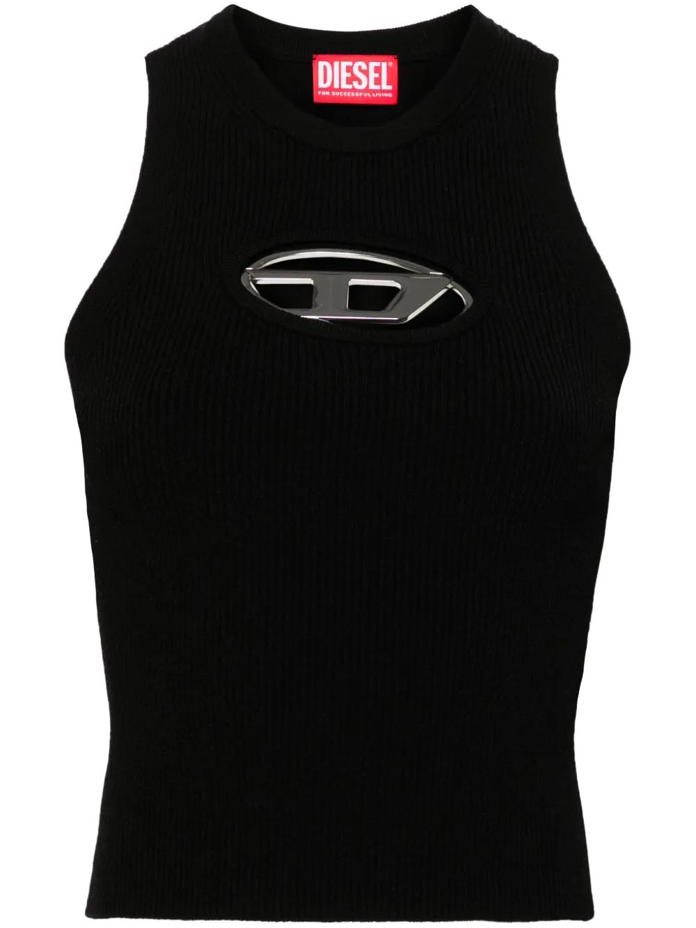 black stretch-design fine ribbed Oval D logo plaque cut-out detailing crew neck sleeveless straight hem