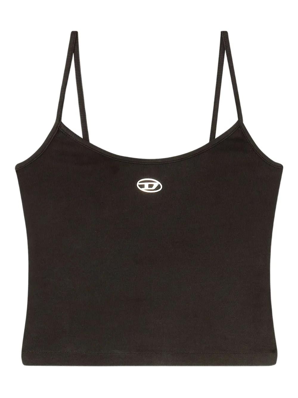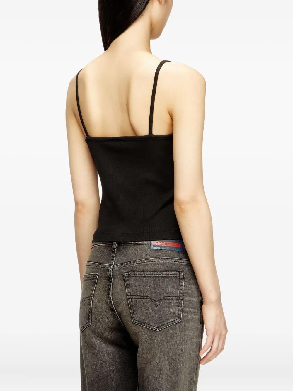 dark brown scoop neck contrast topstitching sleeveless slim fit
