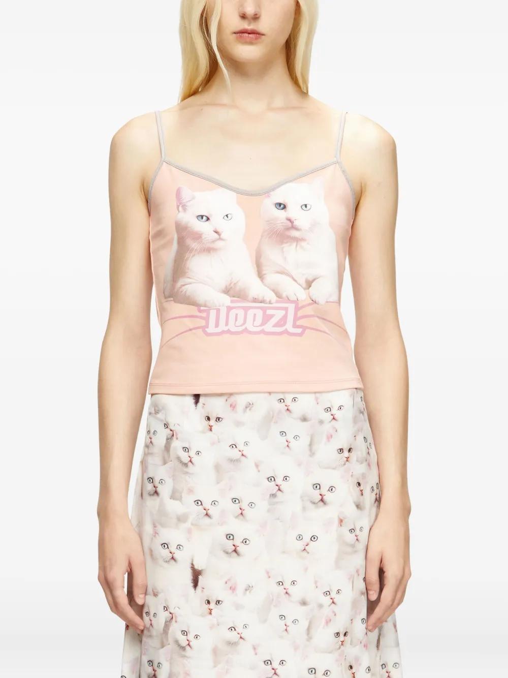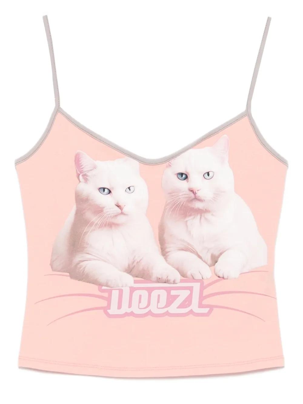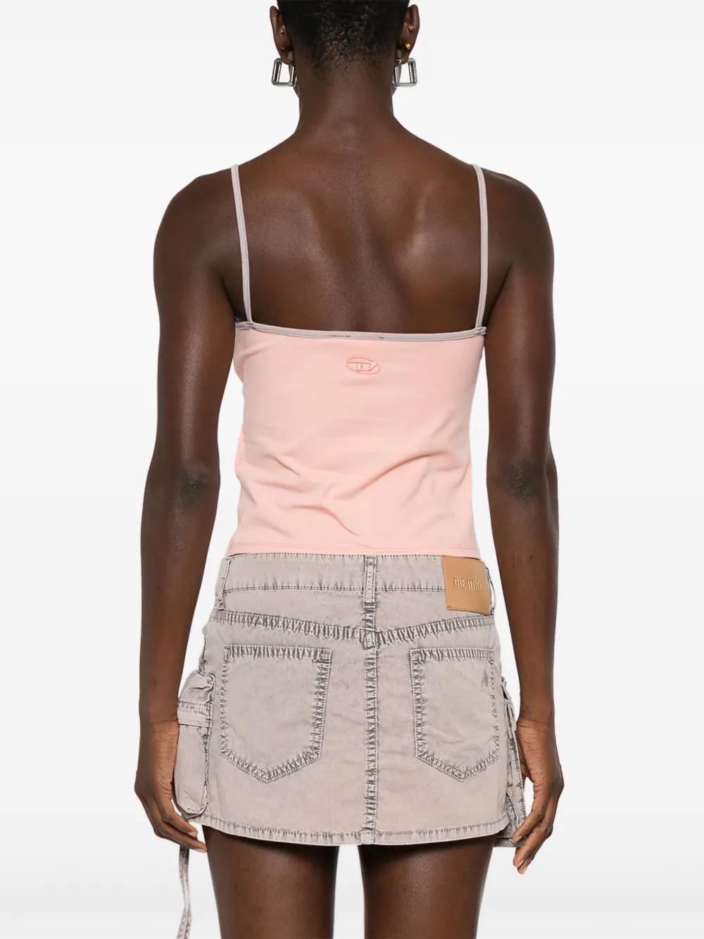 green cotton blend logo detail scoop neck sleeveless straight hem
