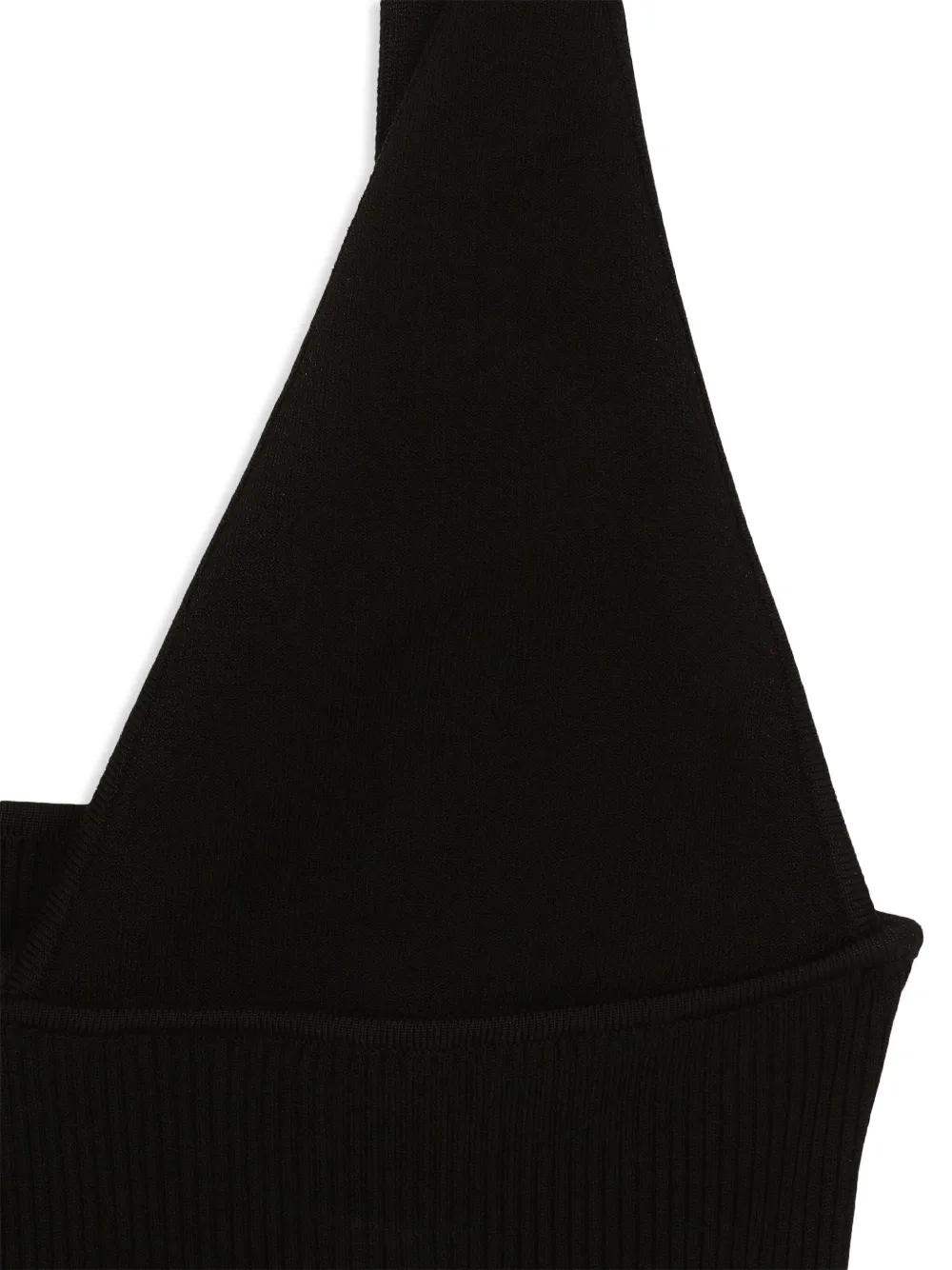 black ribbed knit plunging V-neck spaghetti straps square open back cropped straight hem