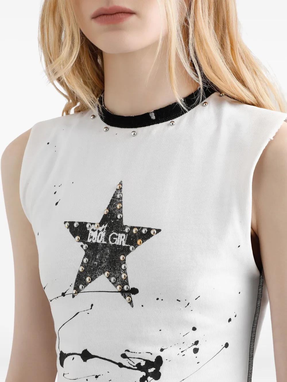 off-white paint splatter effect star motif stud embellishment sleeveless round neck