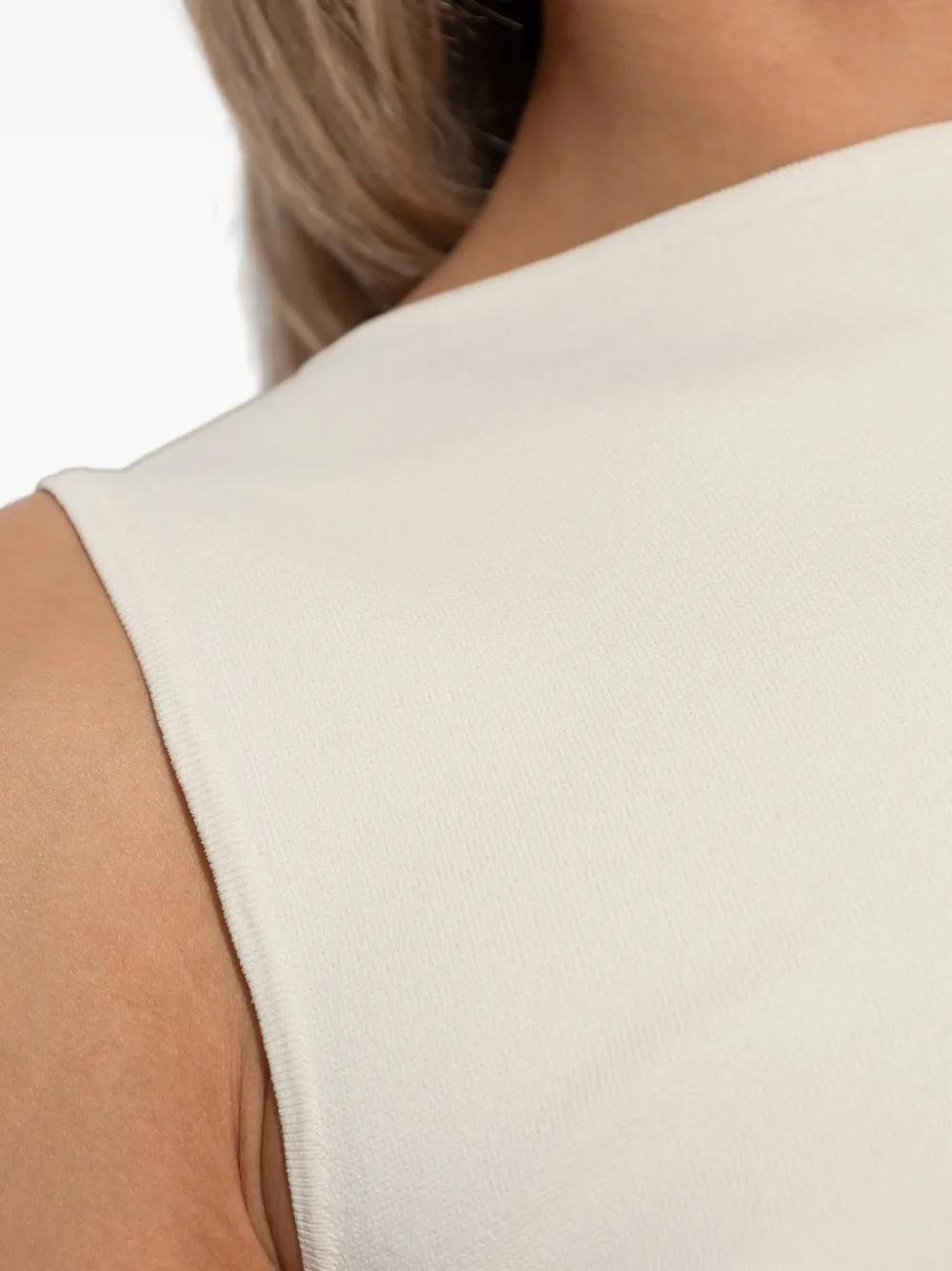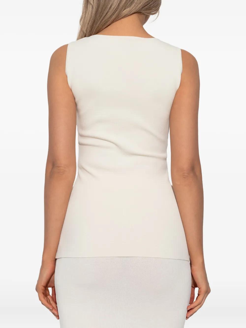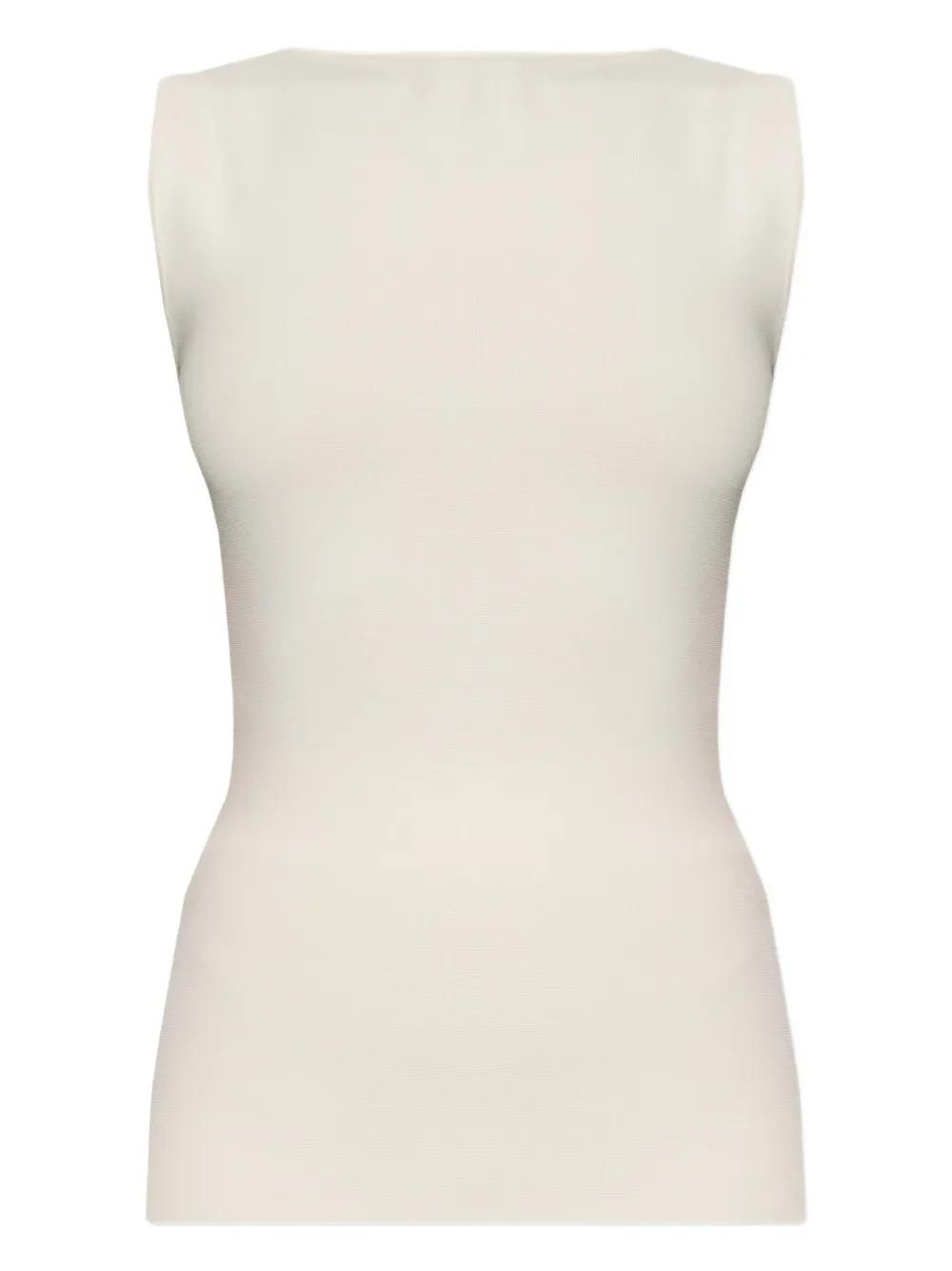 black V-neck wide shoulder straps appliqué logo sleeveless