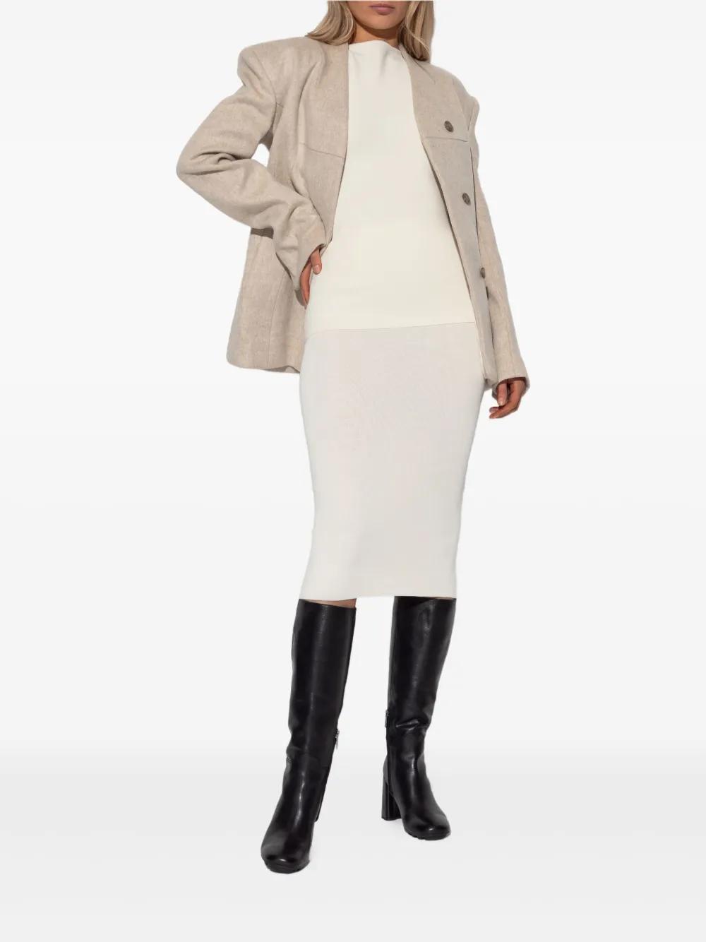 black front button fastening adjustable strap to the rear boned bodice dart detailing