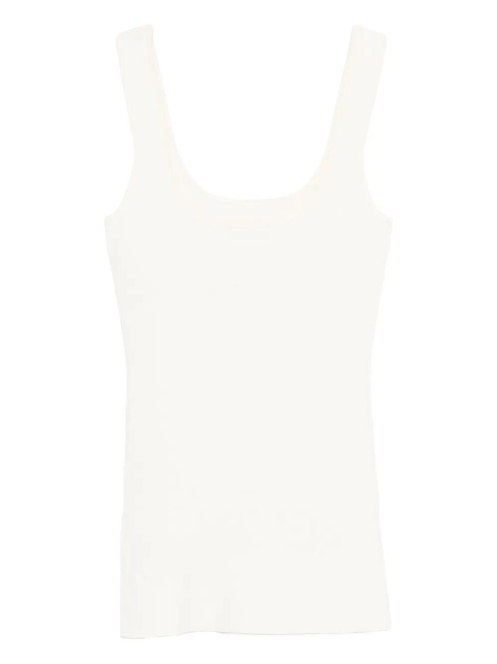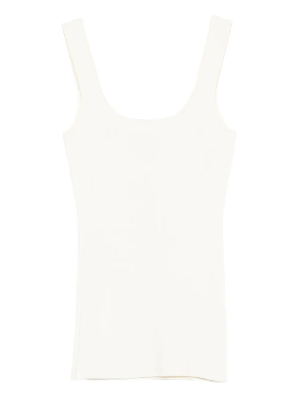 black V-neck wide shoulder straps appliqué logo sleeveless
