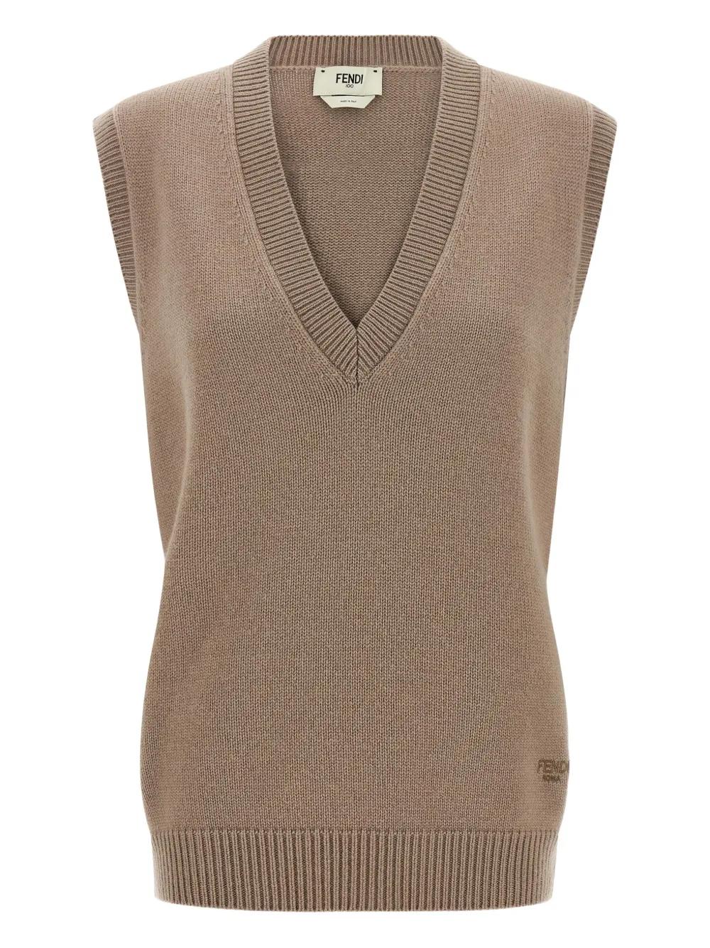 FENDI V-neck cashmere tank top - Brown