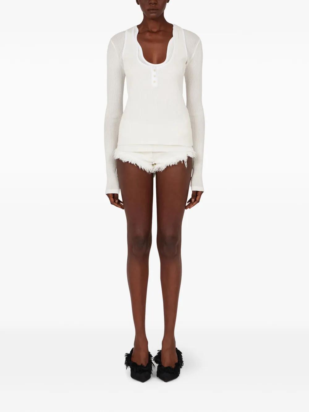 cream crew ribbed neckline padded shoulder detail ribbed hem