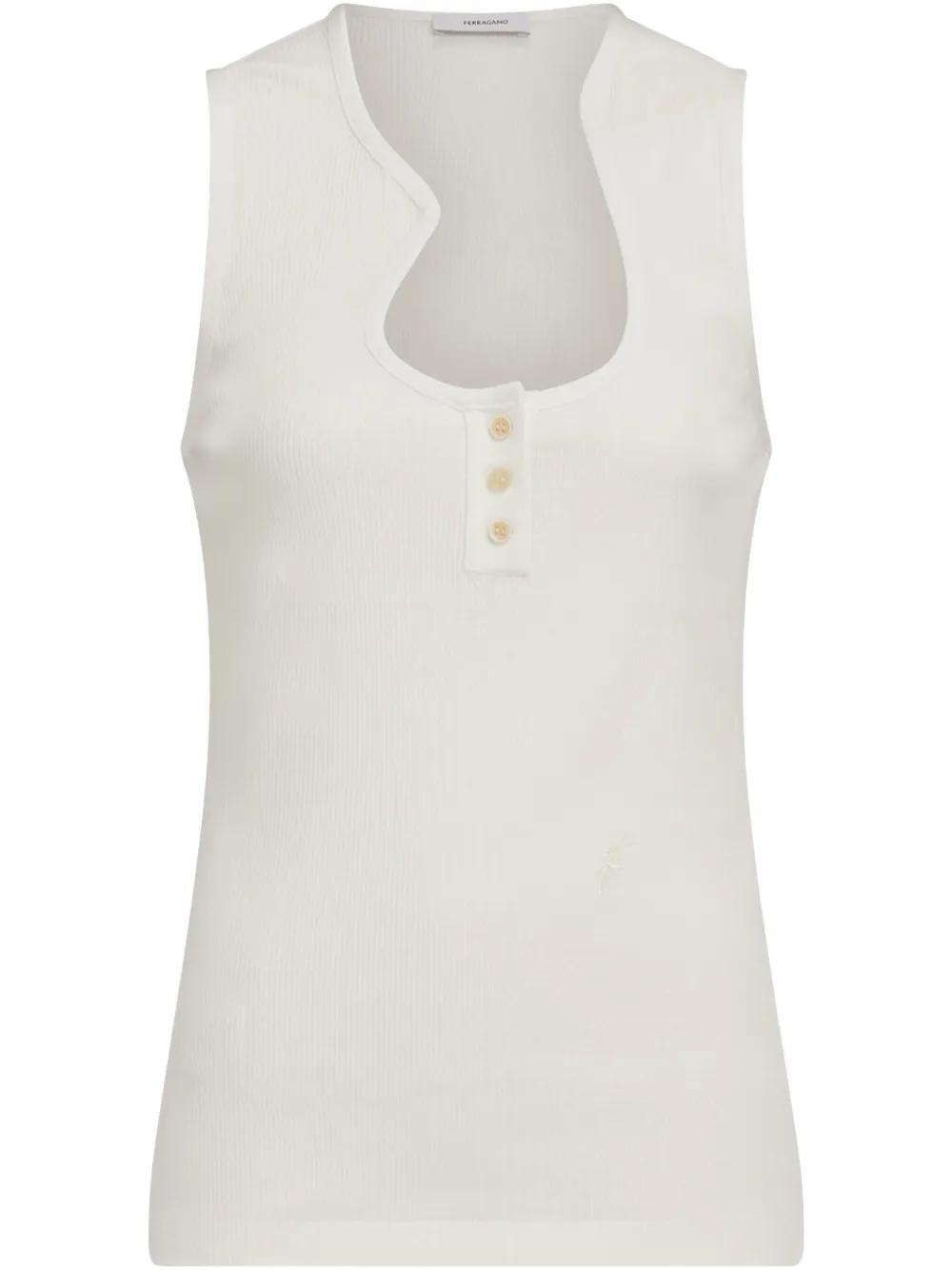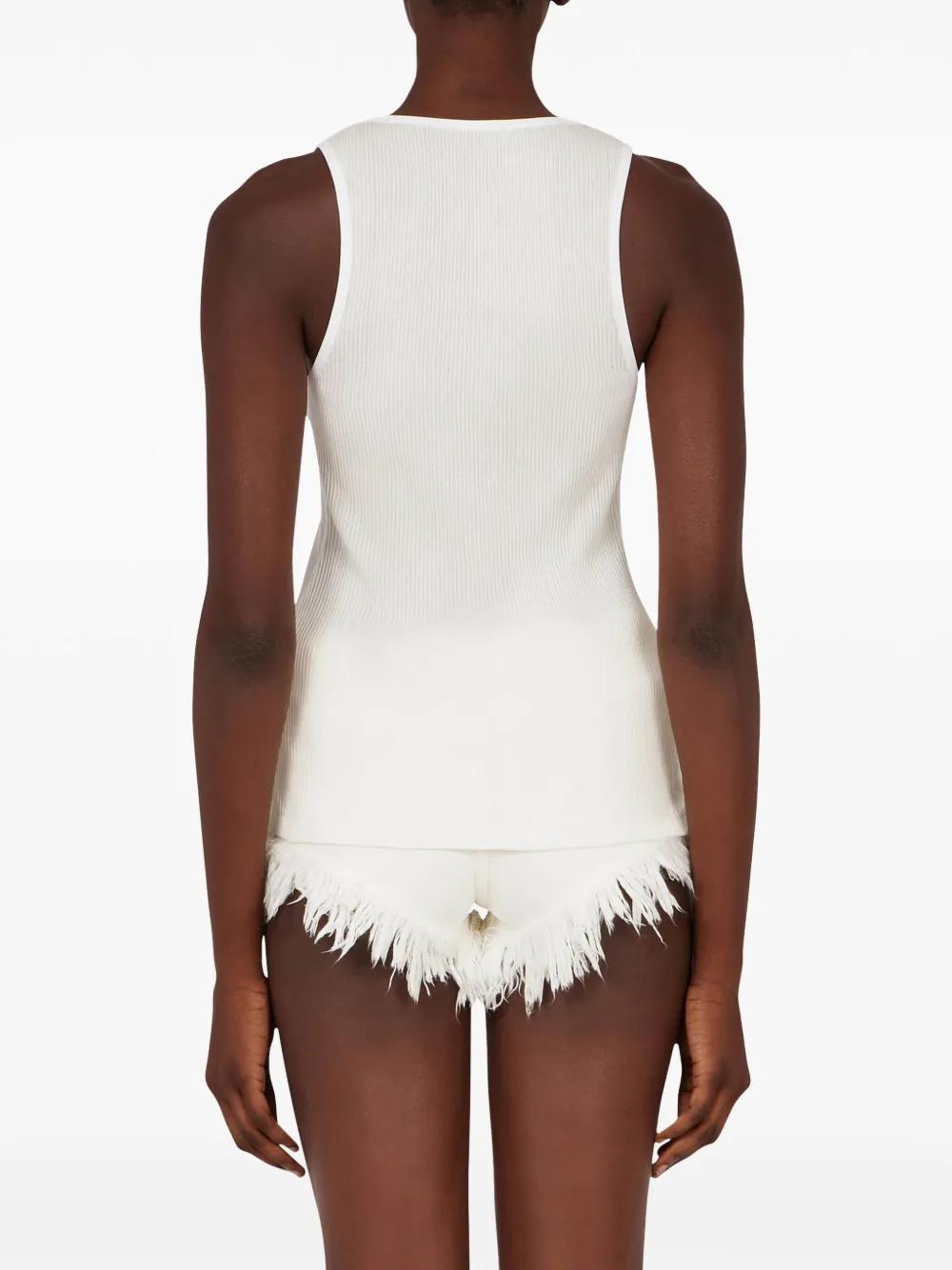 dark brown boucle design V-neck sleeveless ribbed hem short sleeves