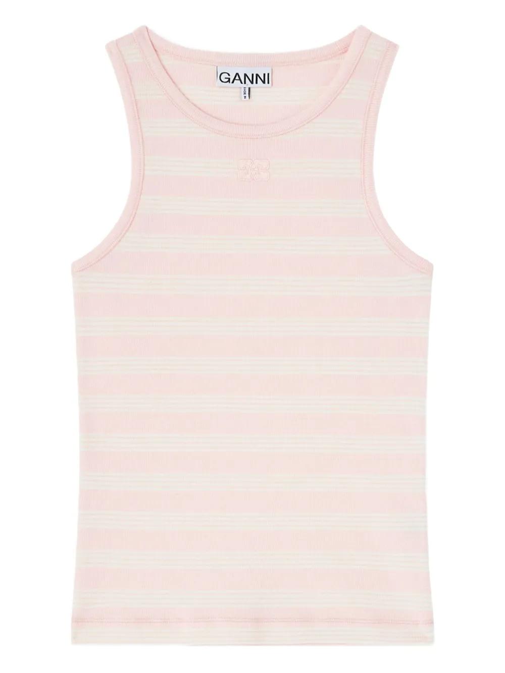 blue stretch-cotton metallic effect silver-tone logo plaque square neck sleeveless adjustable spaghetti straps straight hem