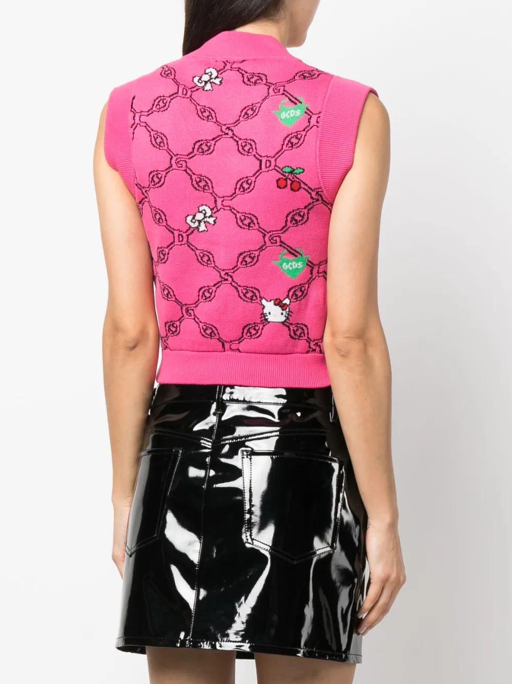 fuchsia pink cotton all-over logo print all-over graphic print knitted construction V-neck sleeveless straight hem