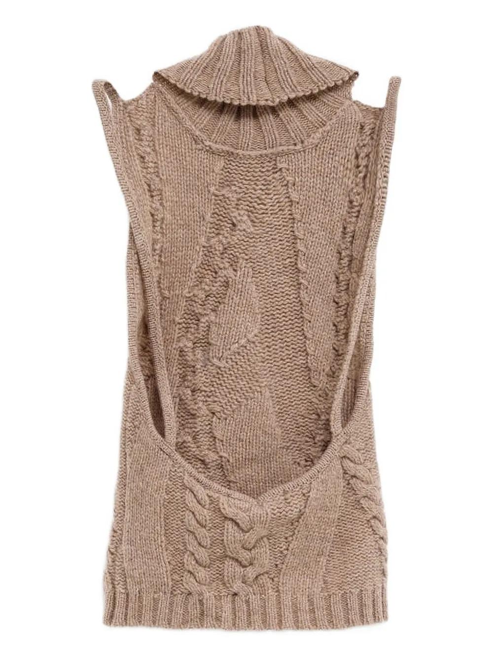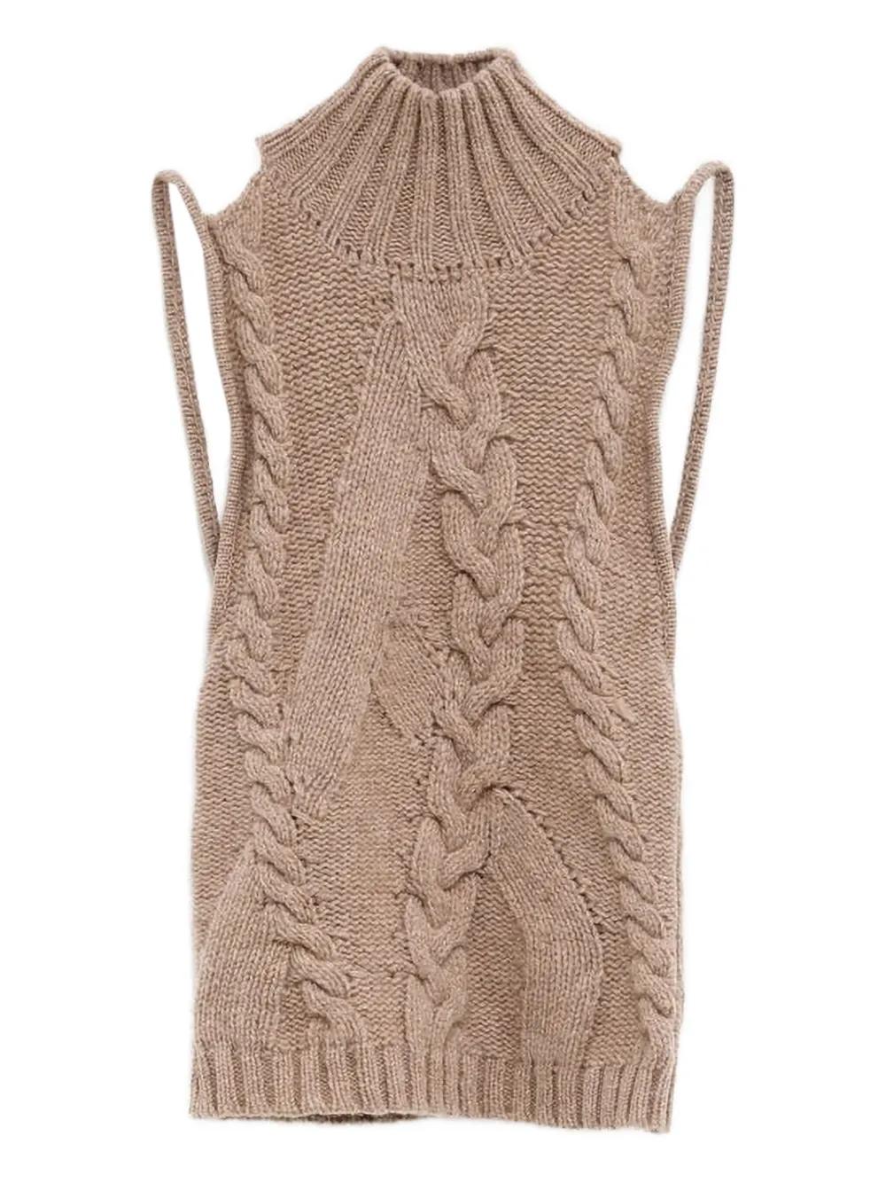 beige cable knit sleeveless ribbed hem