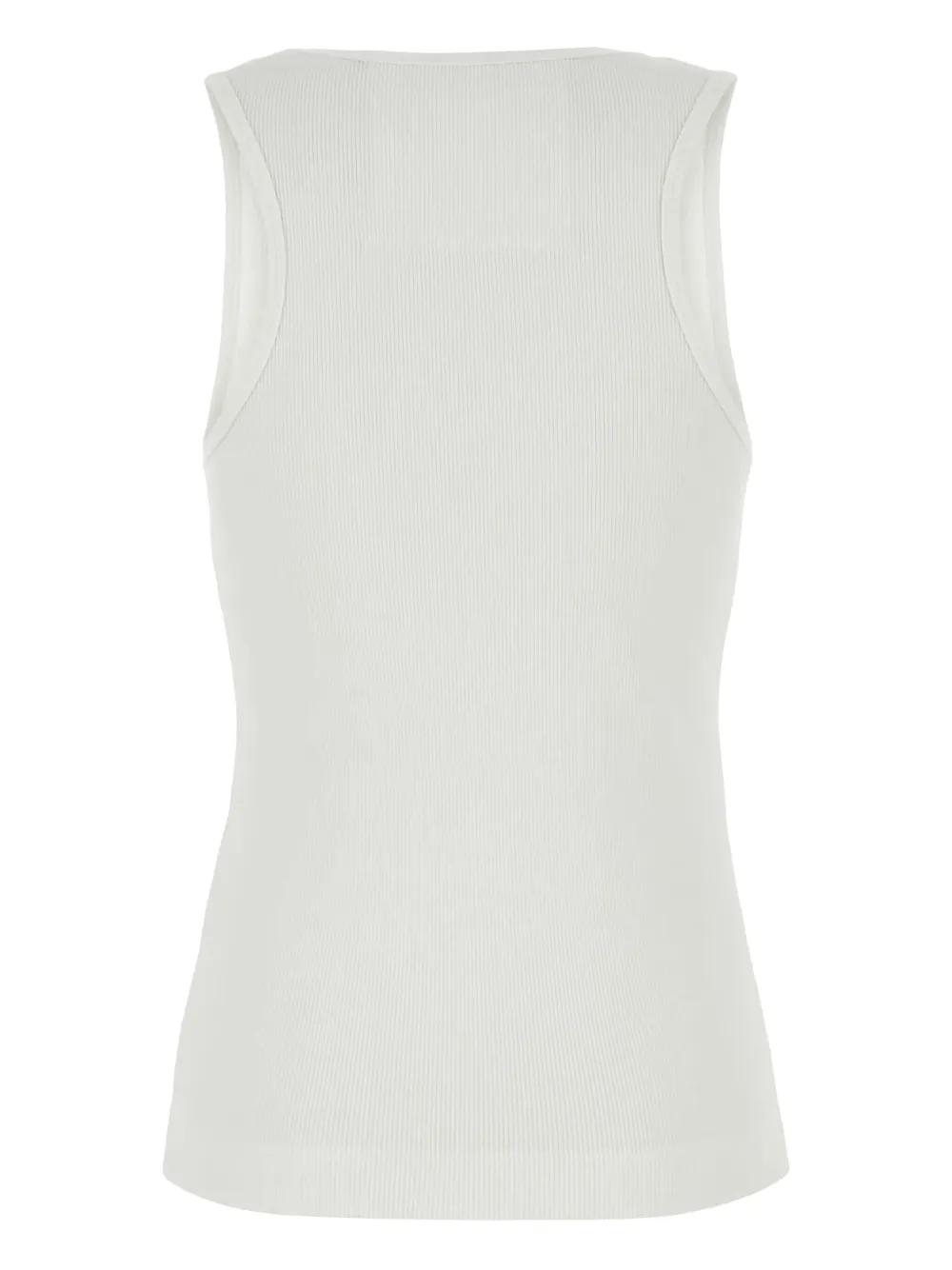 white silver-tone logo plaque scoop neck fine ribbed sleeveless