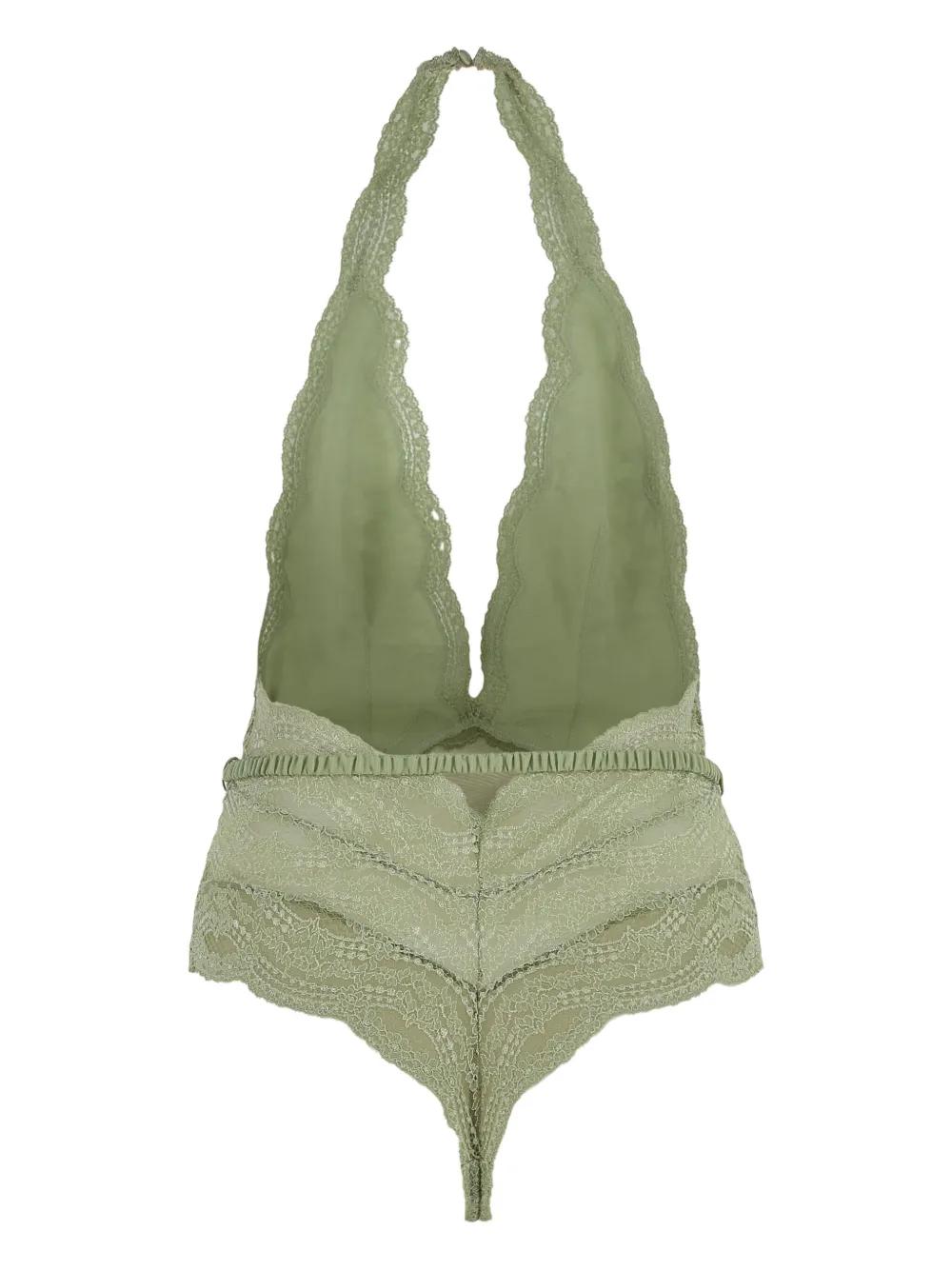 green floral lace deep V-neck removable elasticated waistband buckle detail Just a reminder that this piece must be tried on over your own garments.