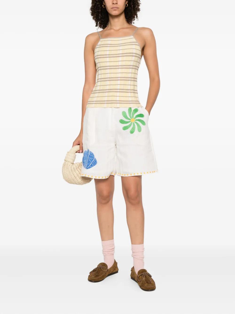 yellow checked pattern spaghetti straps ribbed texture straight hem sleeveless