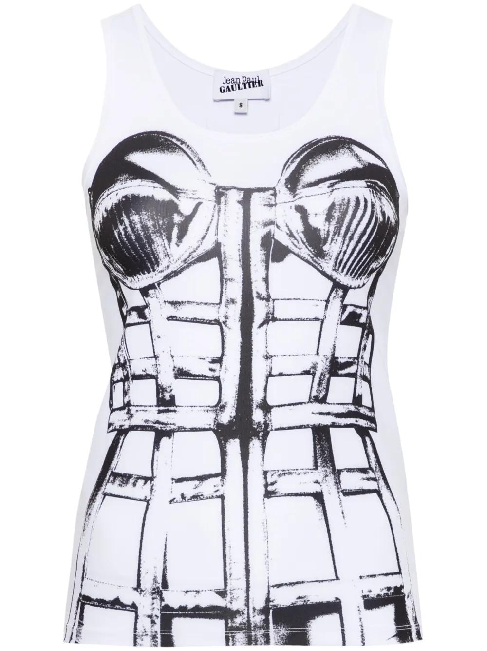 Jean Paul Gaultier trompe l'oeil print top - White