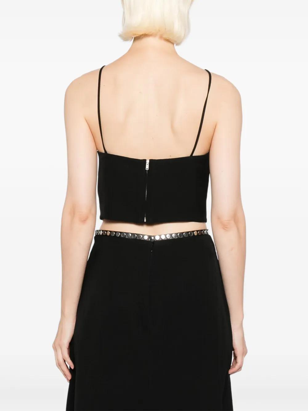black V-neck wide shoulder straps appliqué logo sleeveless