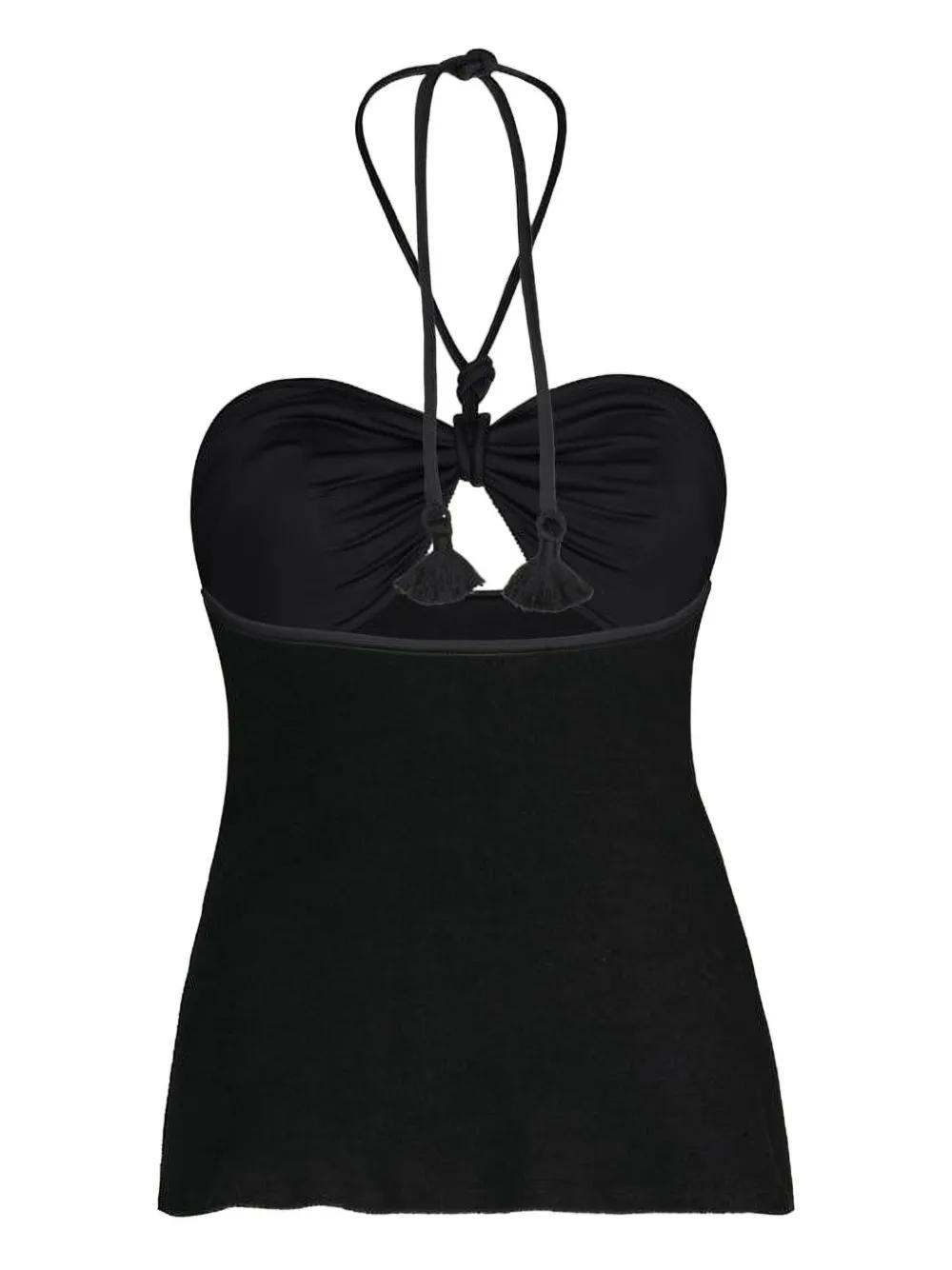 black terry fabric halterneck cut-out detail tie fastening sleeveless