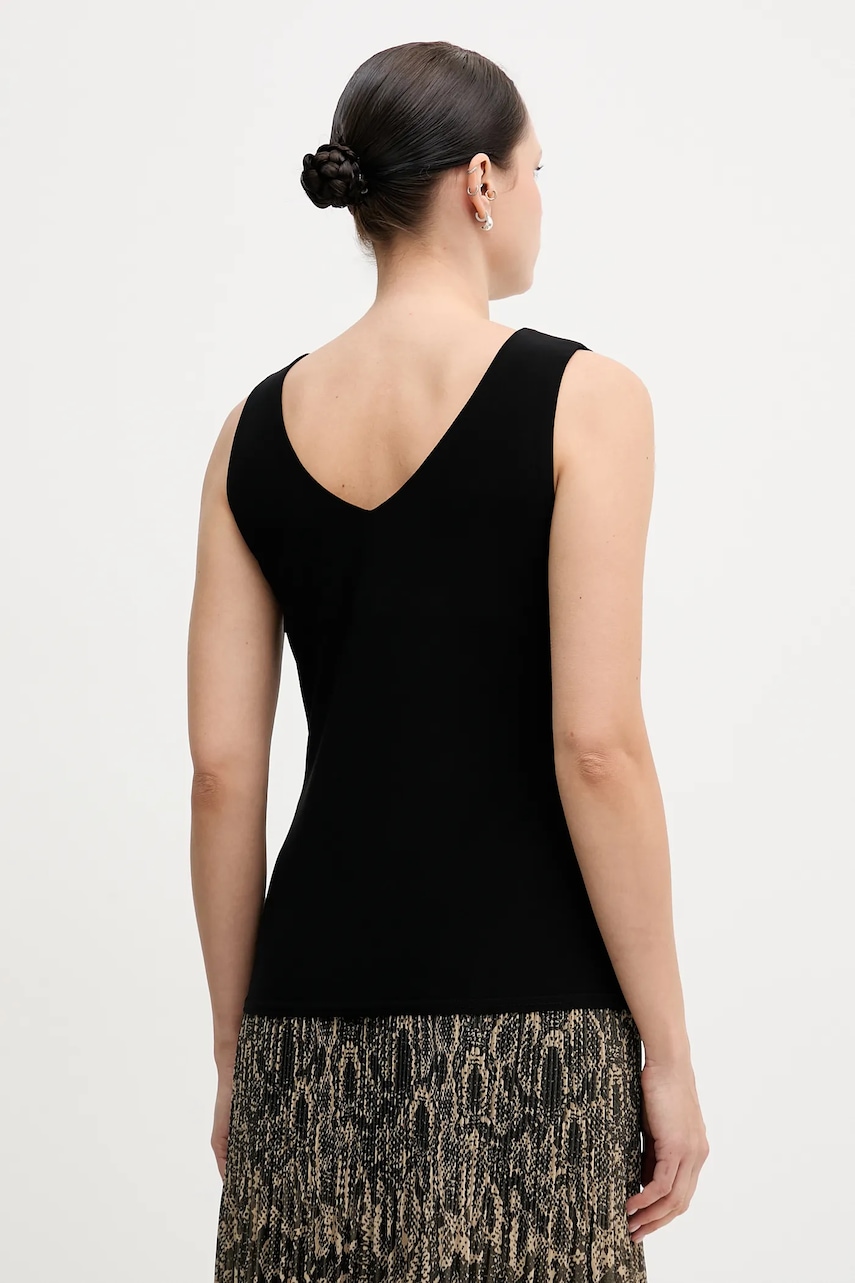 - Prosty, nie blokujący ruchów fason. - Ozdobny, spiczasty dekolt. - Z przodu dodatkowa warstwa materiału w postaci podszewki. - Płaskie szwy chronią skórę przed otarciami i podrażnieniami oraz zapewniają wysoki poziom komfortu. - Cienka, elastyczna dzianina. - Długość: 59 cm. - Szerokość pod pachami: 45 cm. - Wymiary podane dla rozmiaru: 36.