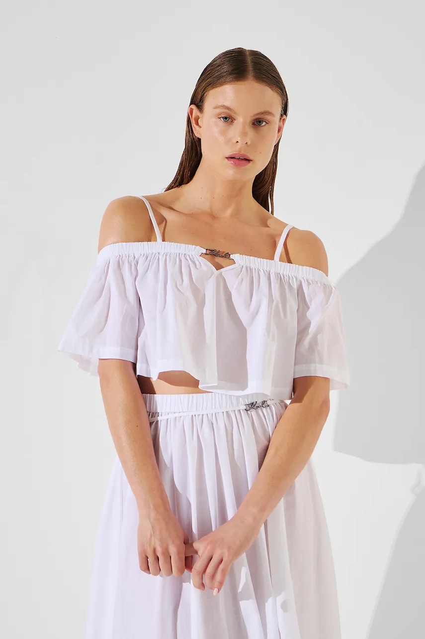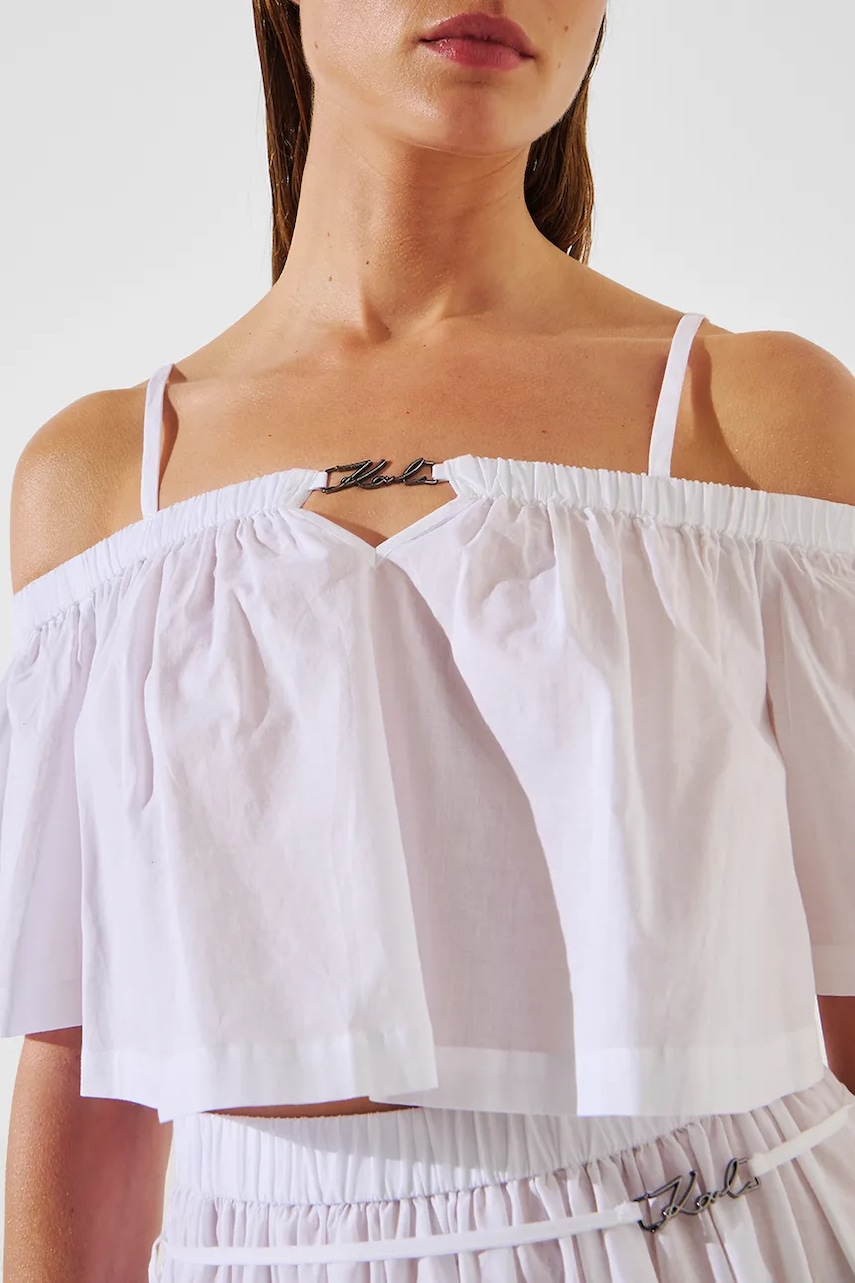 Karl Lagerfeld top bawełniany kolor biały dekolt hiszpański A2W46042