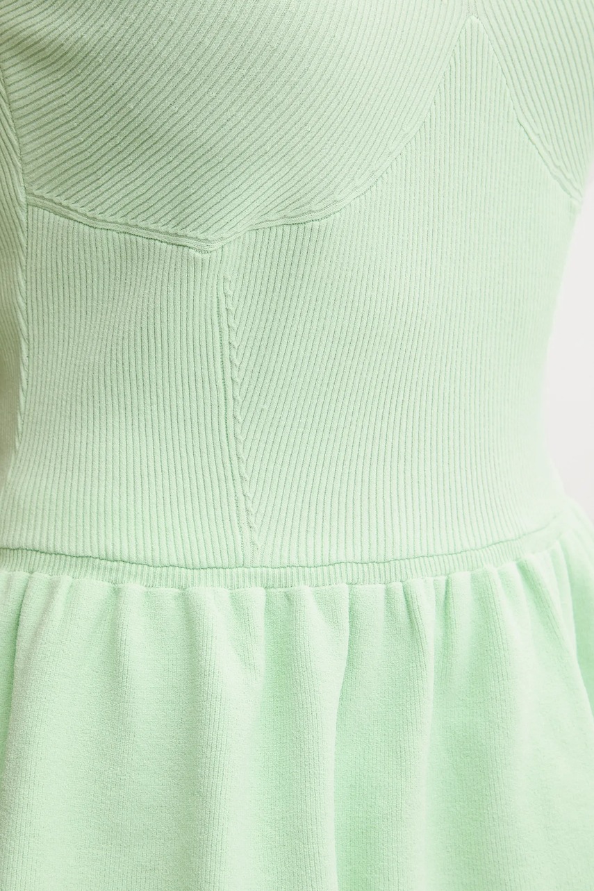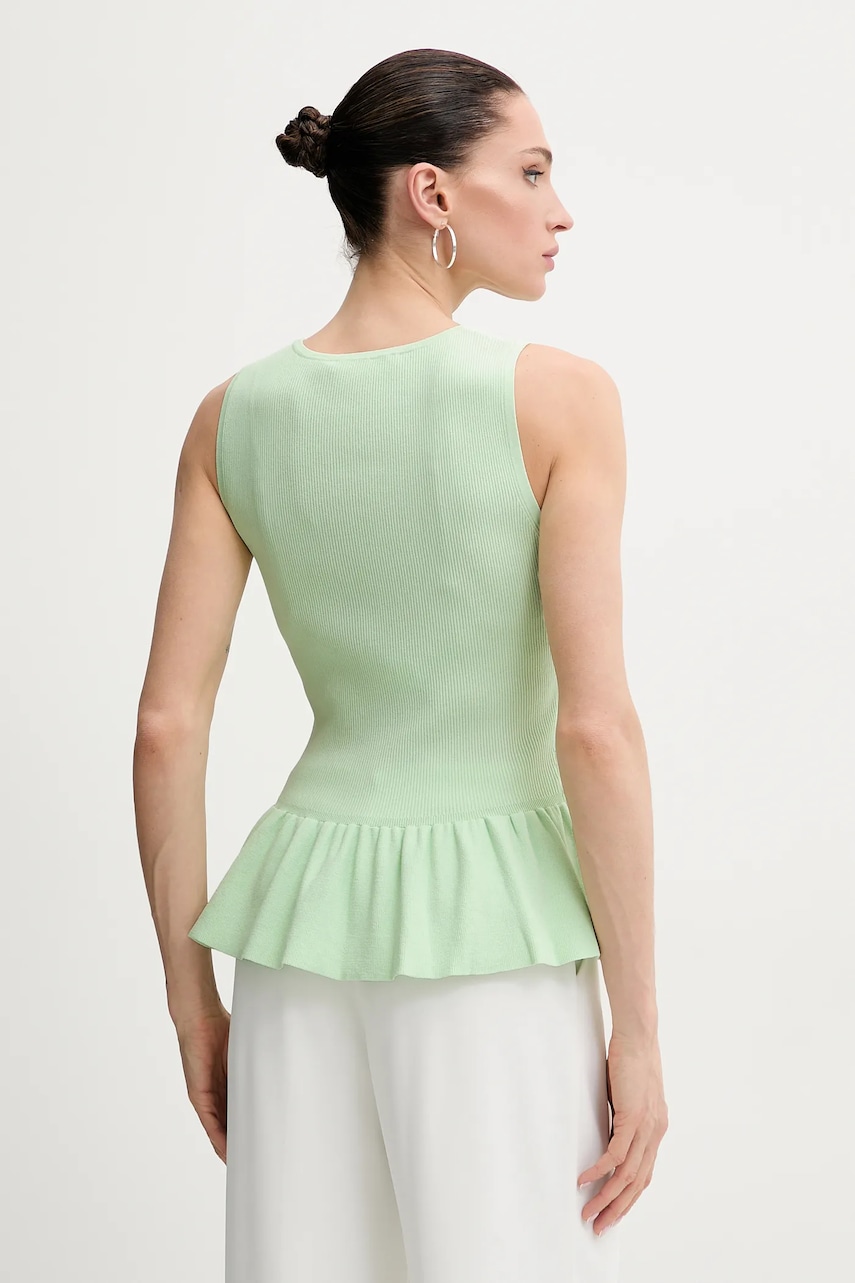 - Ten produkt został częściowo uszyty z wiskozy pochodzącej z recyklingu. - Klasyczny, okrągły dekolt. - Model z ozdobną falbaną. - Fason slim.