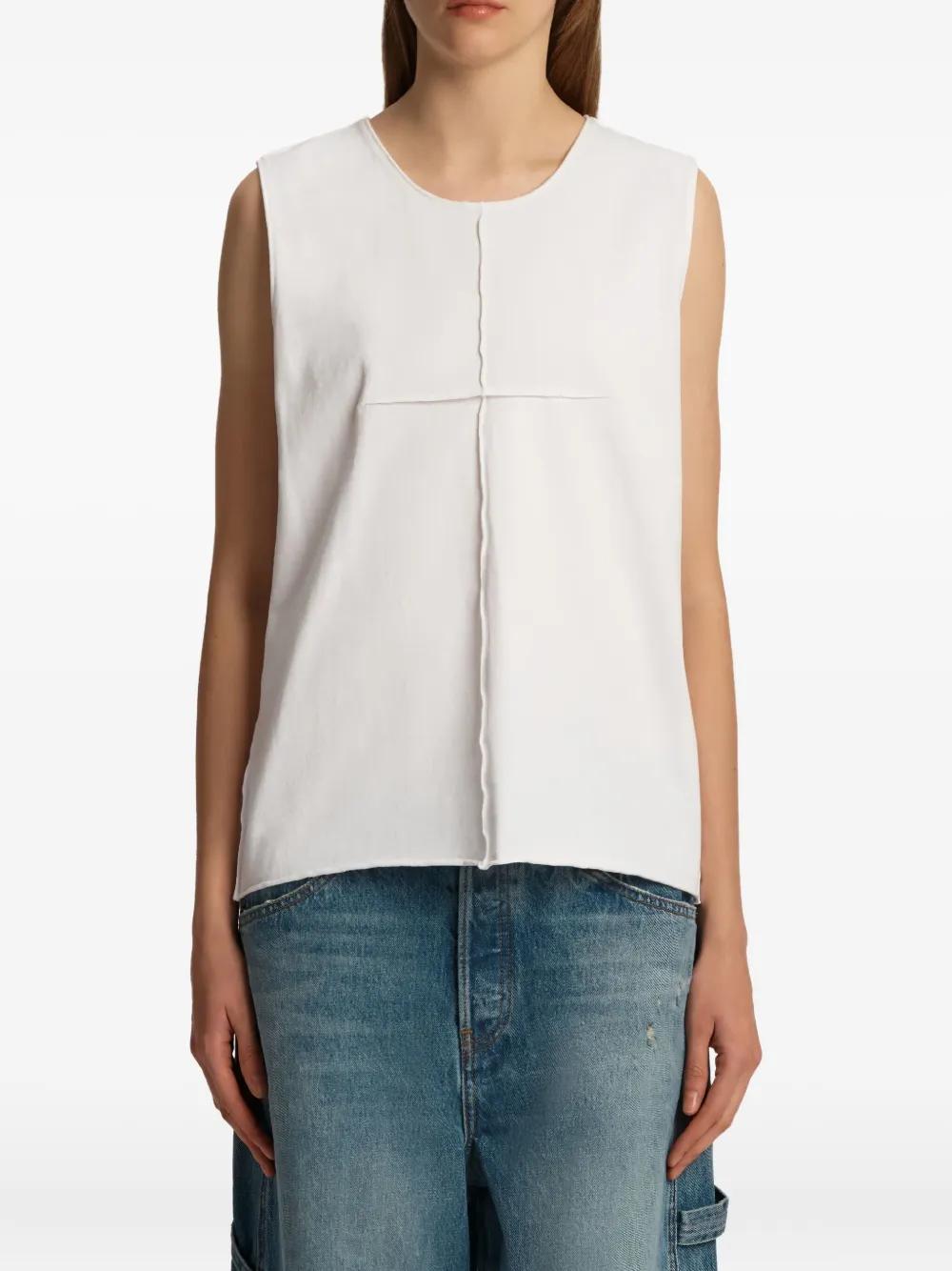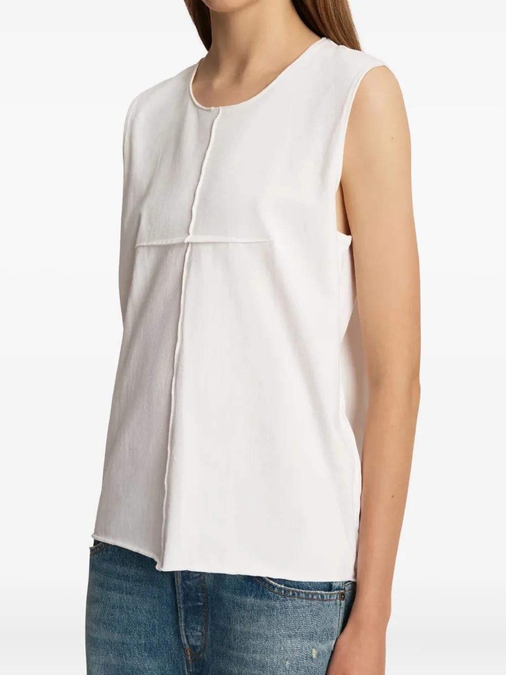 dark brown scoop neck contrast topstitching sleeveless slim fit