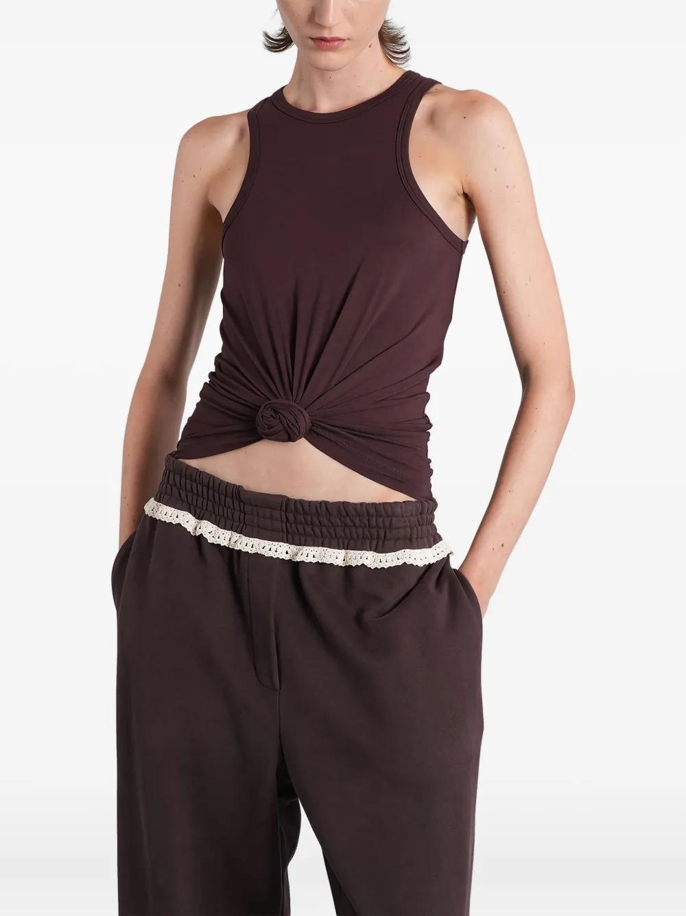 black cotton round neck sleeveless logo print to the front decorative button detailing straight hem