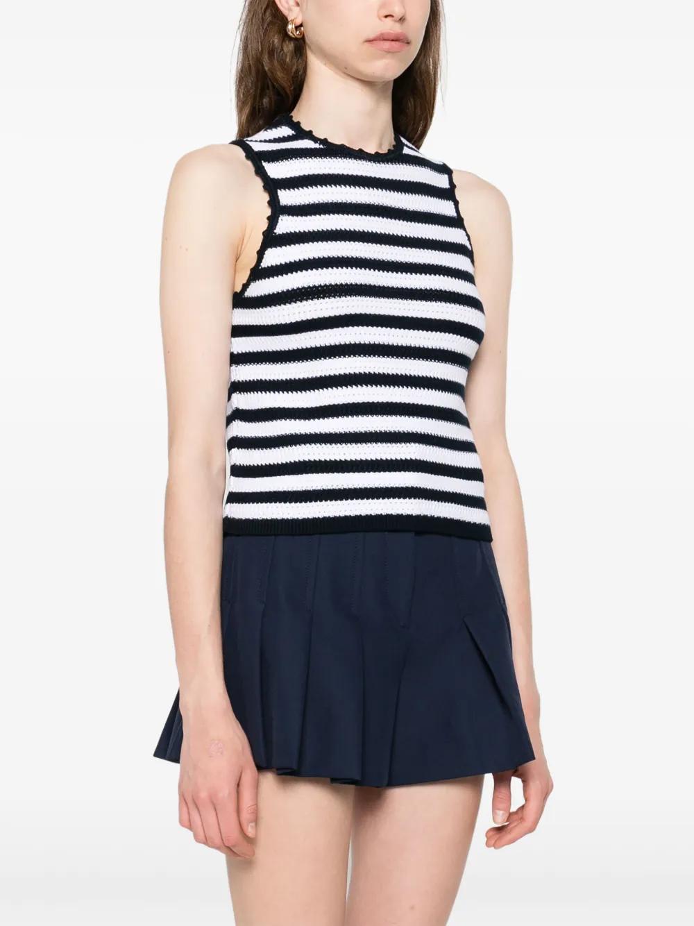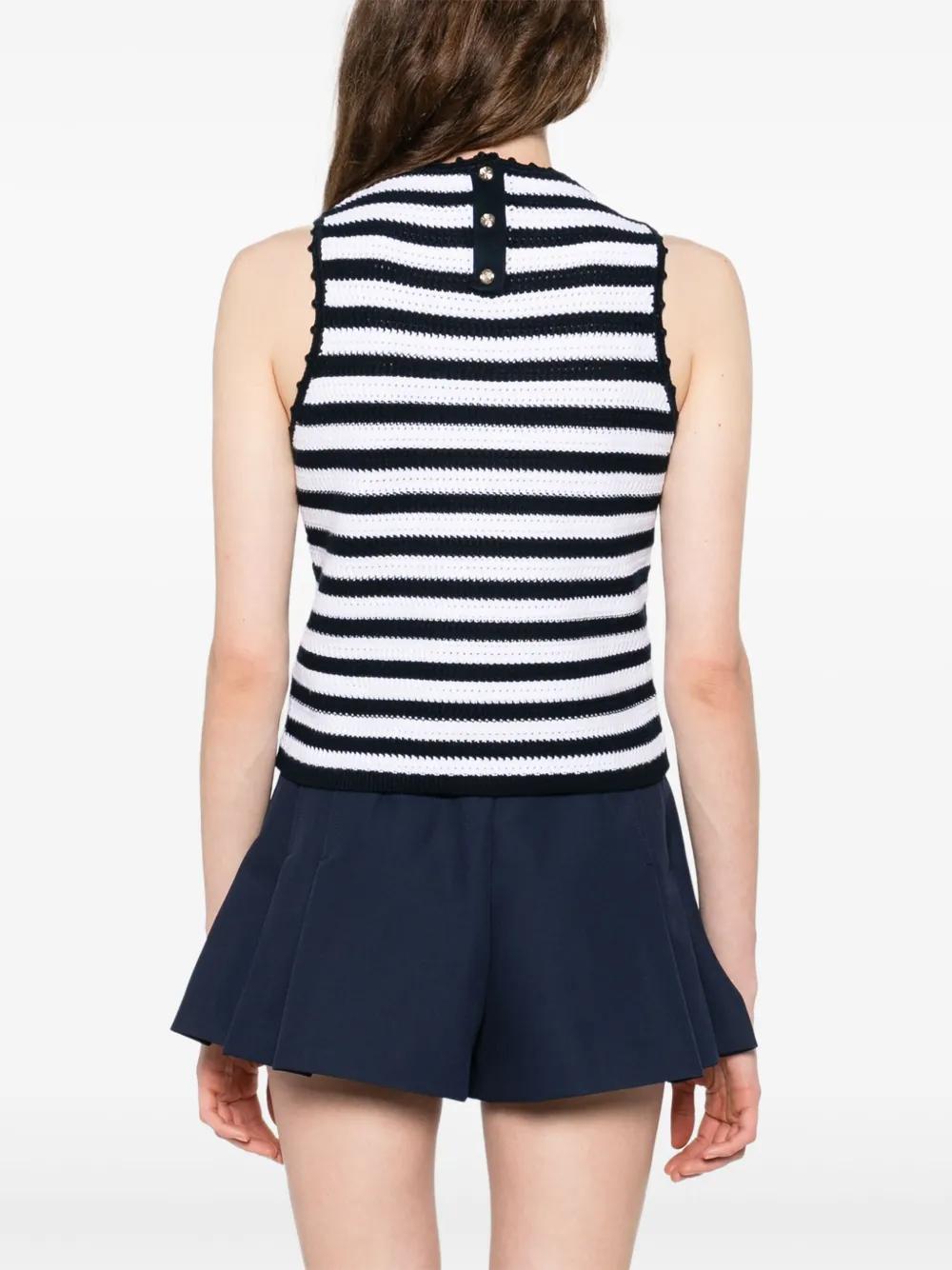 white rear button fastening crew neck sleeveless crochet trim