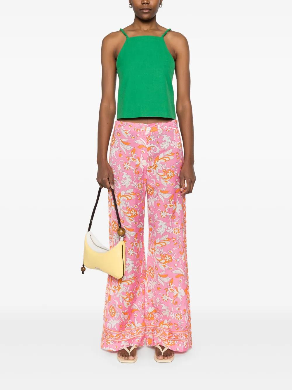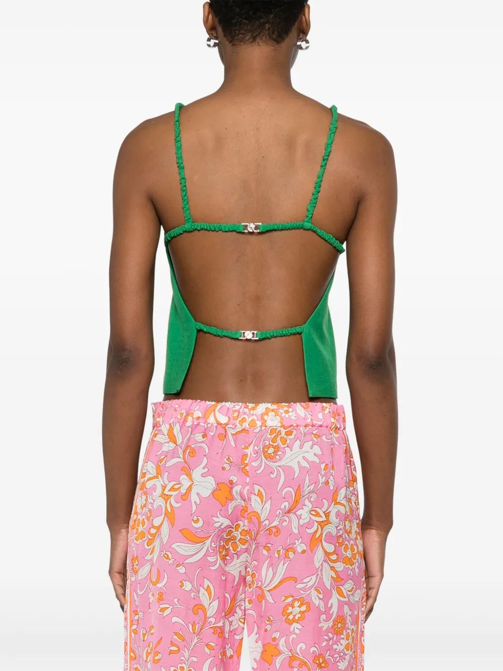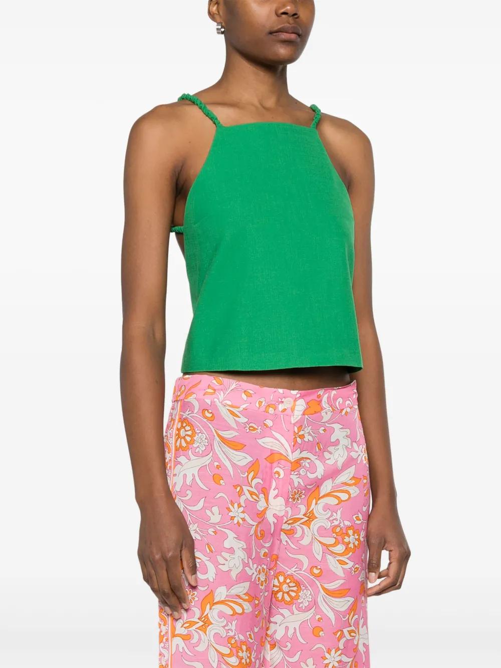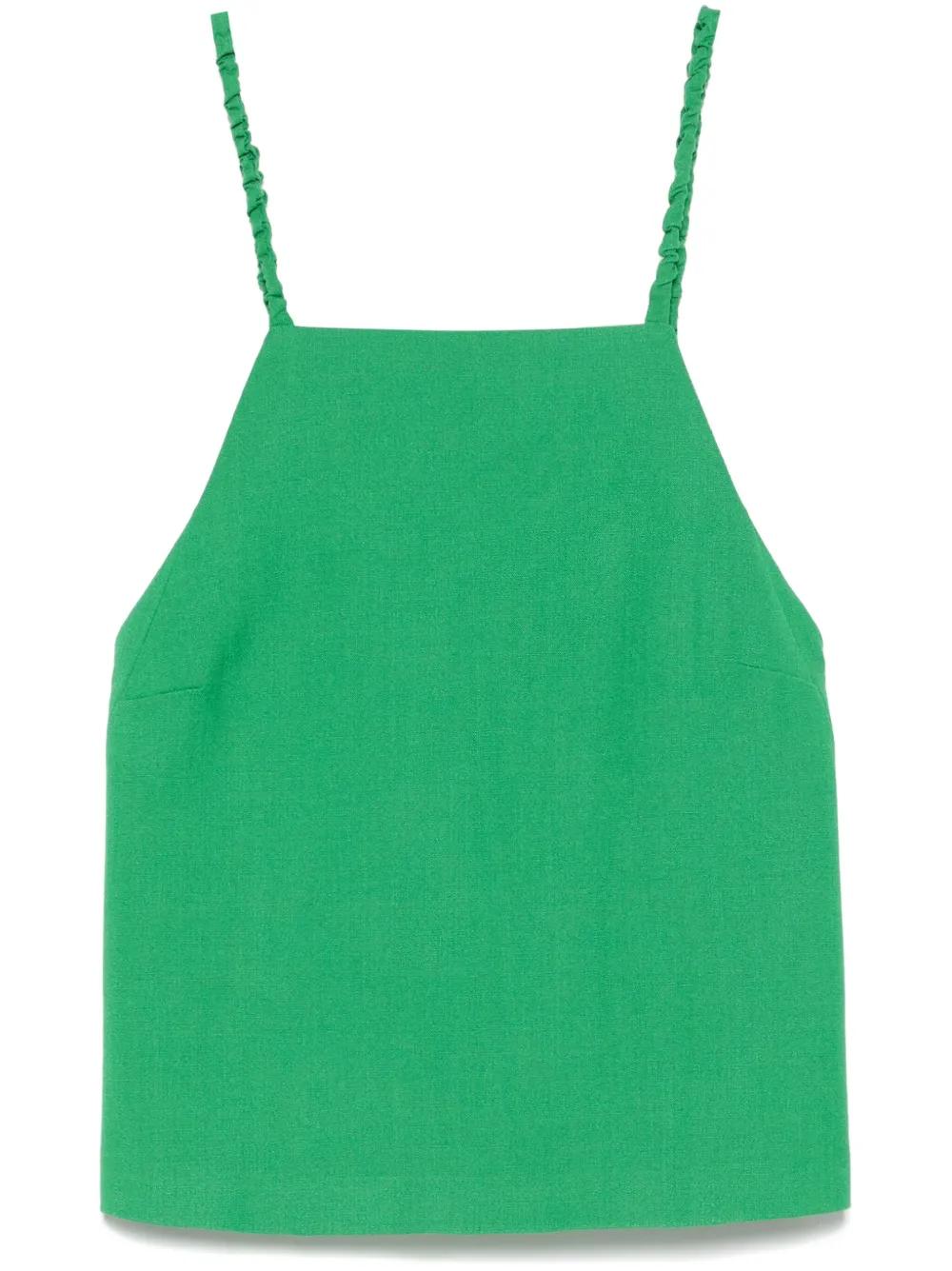 green cotton blend logo detail scoop neck sleeveless straight hem