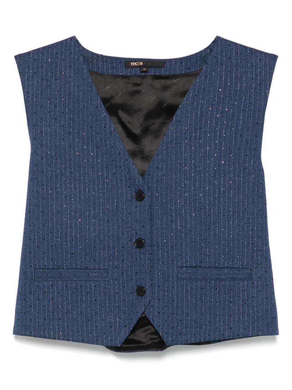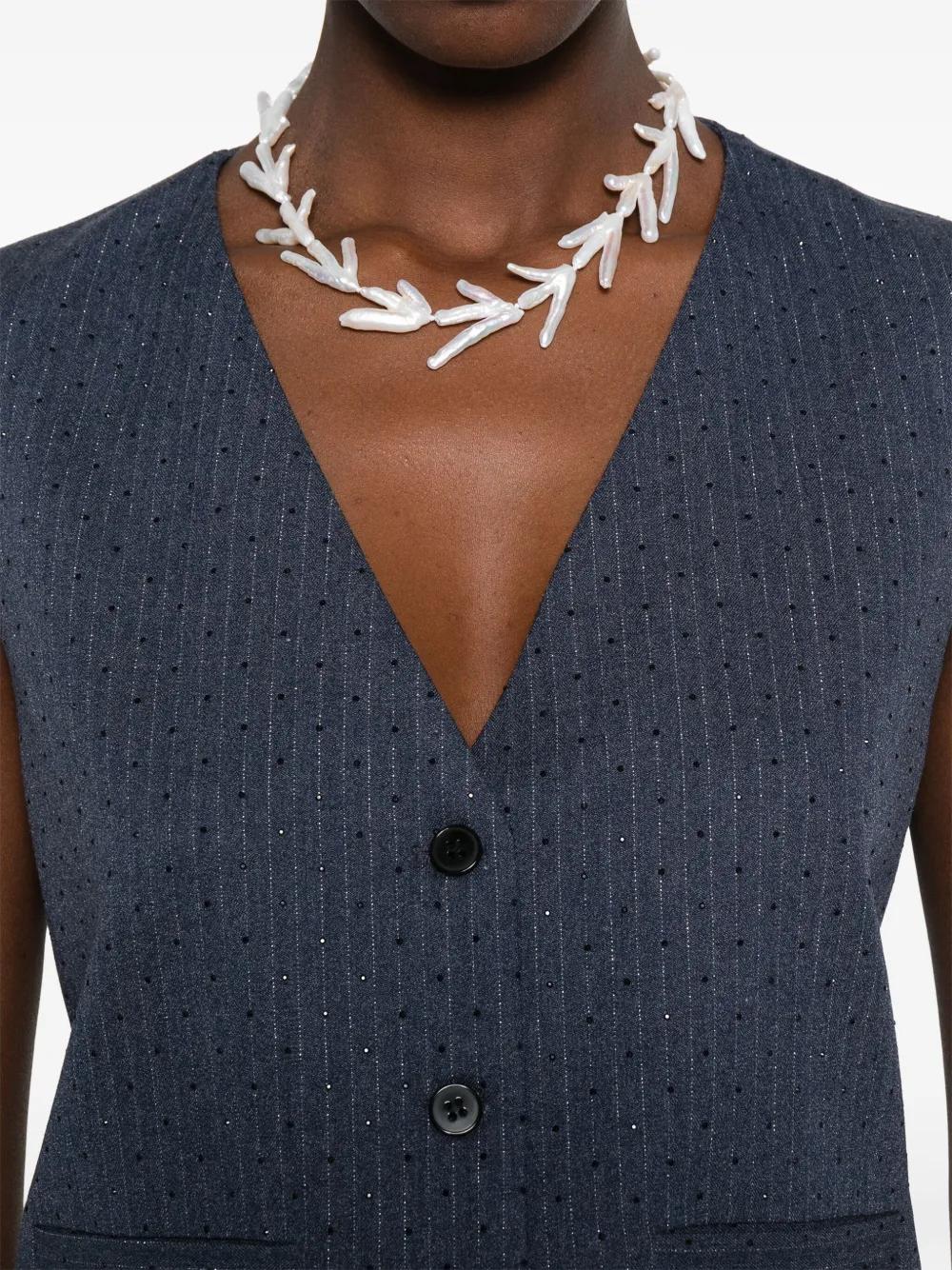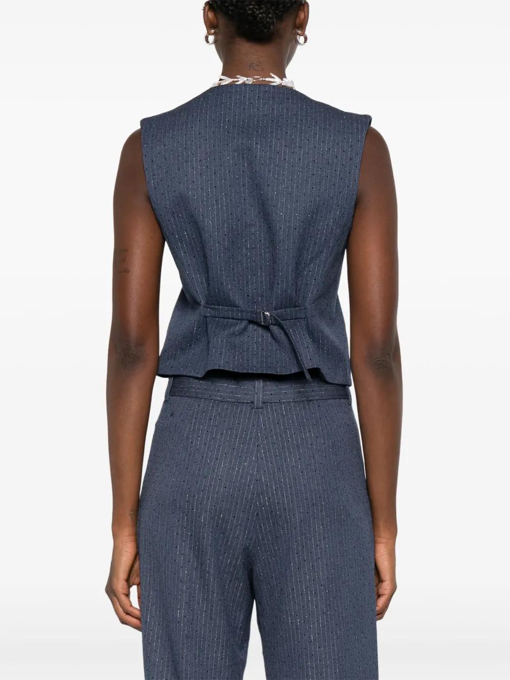 indigo blue front button fastening adjustable strap to the rear rhinestone embellishment faux pocket detail