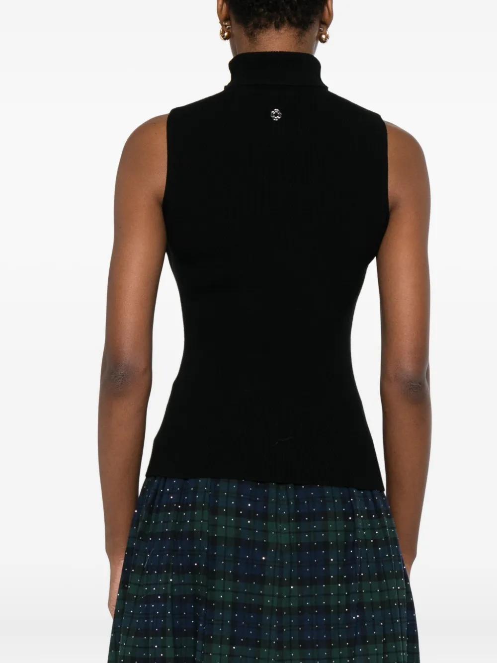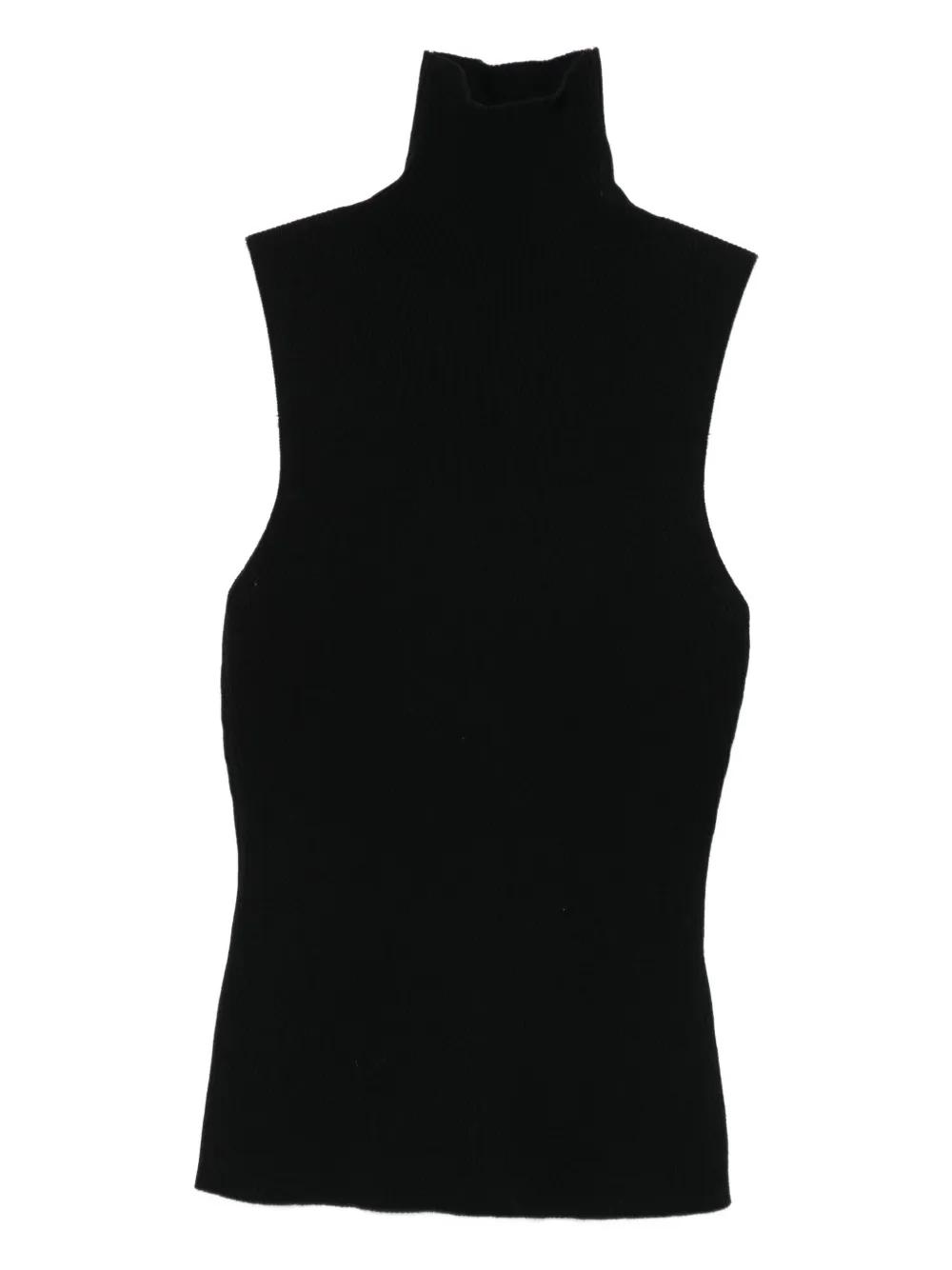 black ribbed texture turtleneck sleeveless close-fitting straight hemline