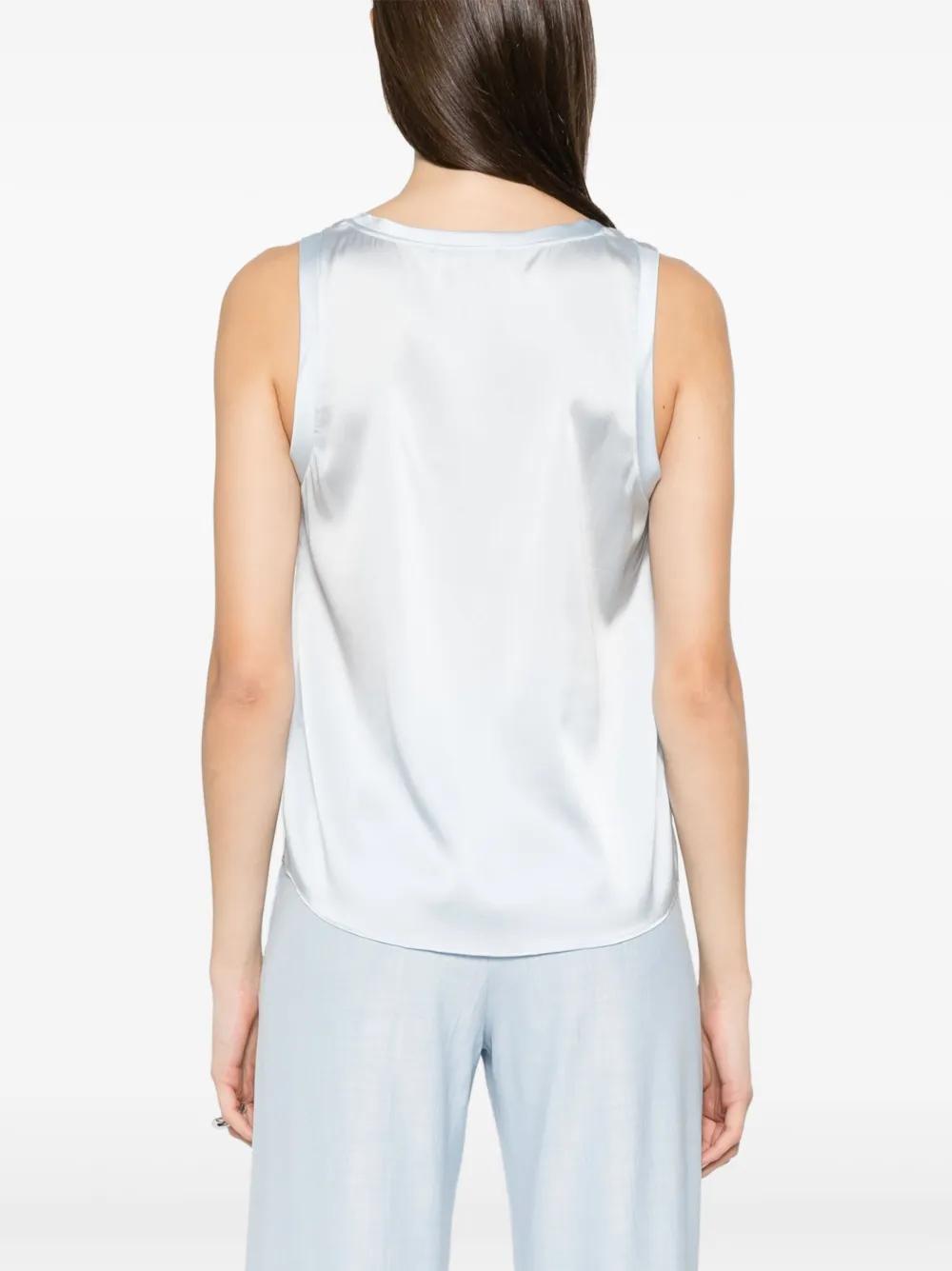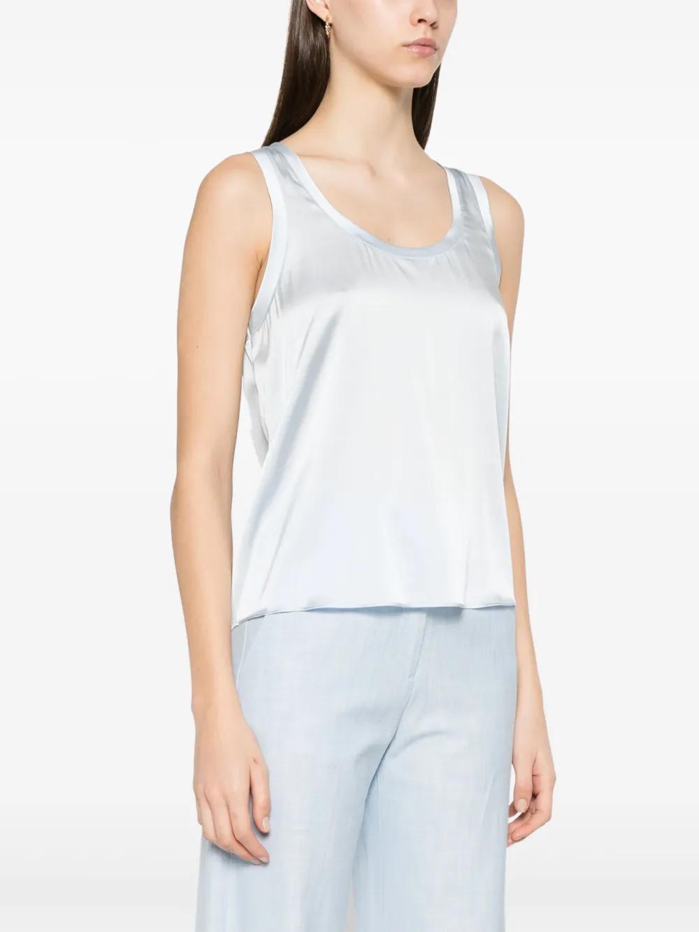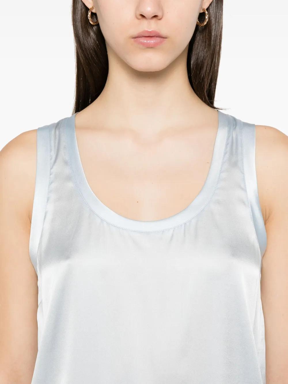 green cotton blend logo detail scoop neck sleeveless straight hem