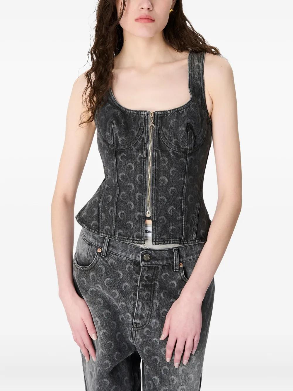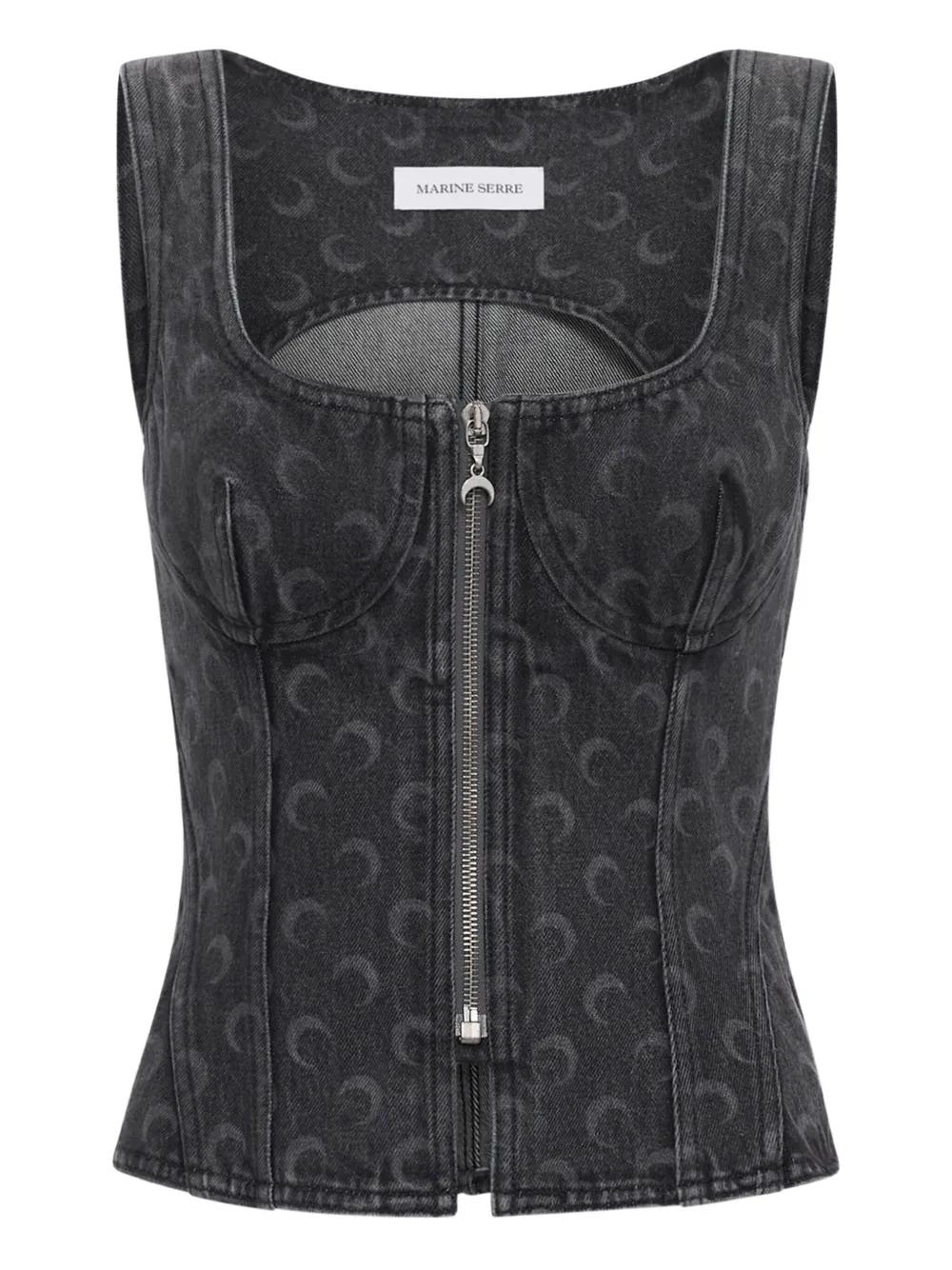 dark grey moon print zip fastening square neck sleeveless panelled design