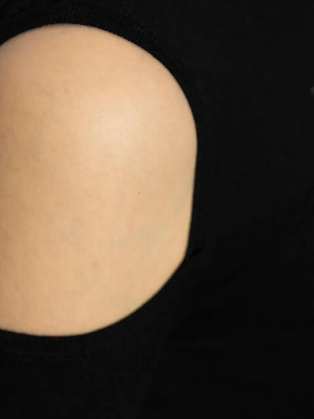 black cowl neck sleeveless open back Just a reminder that this piece must be tried on over your own garments.