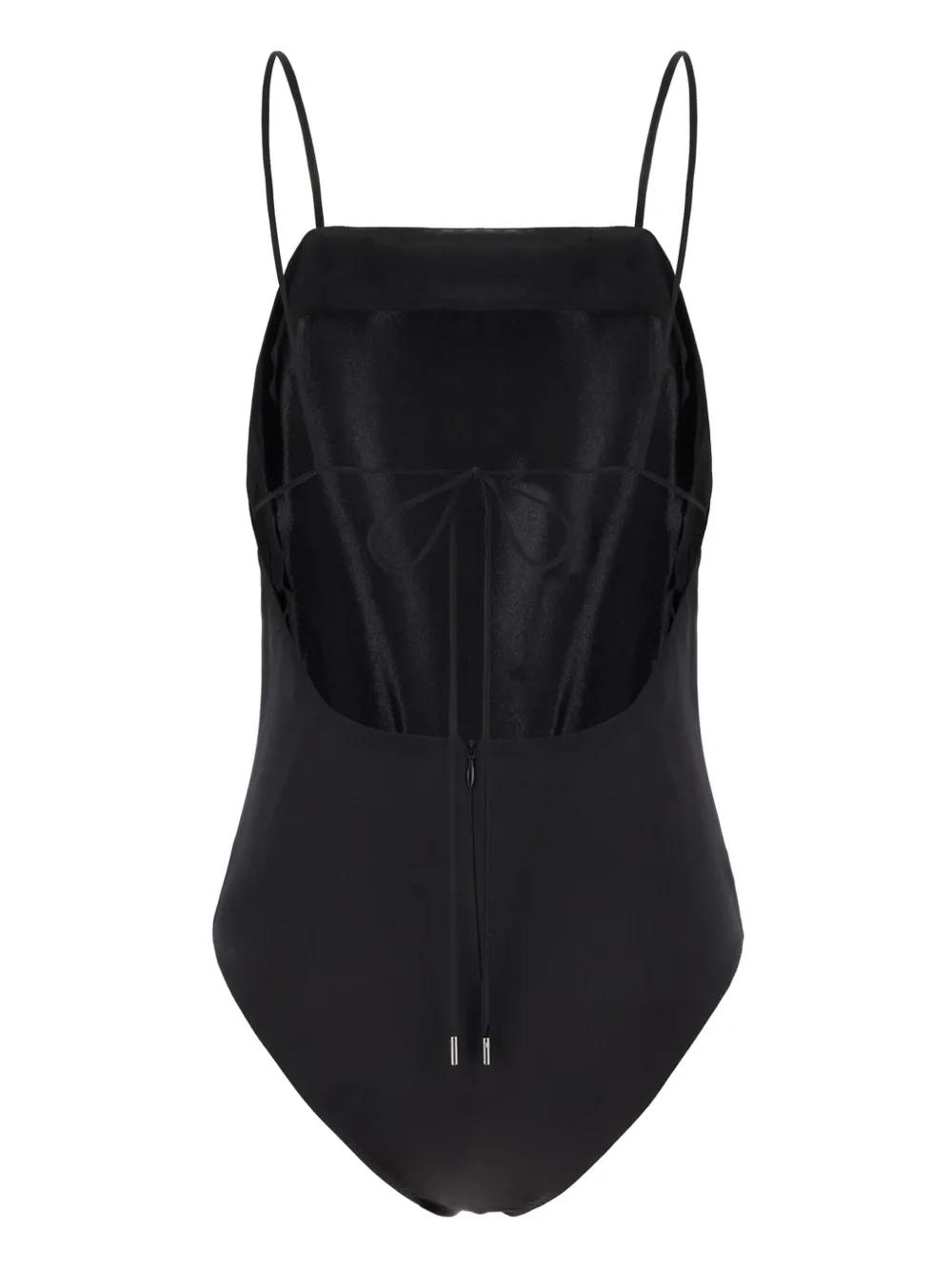 black silk spaghetti straps rear touch-strap fastening ruffled detailing Just a reminder that this piece must be tried on over your own garments.