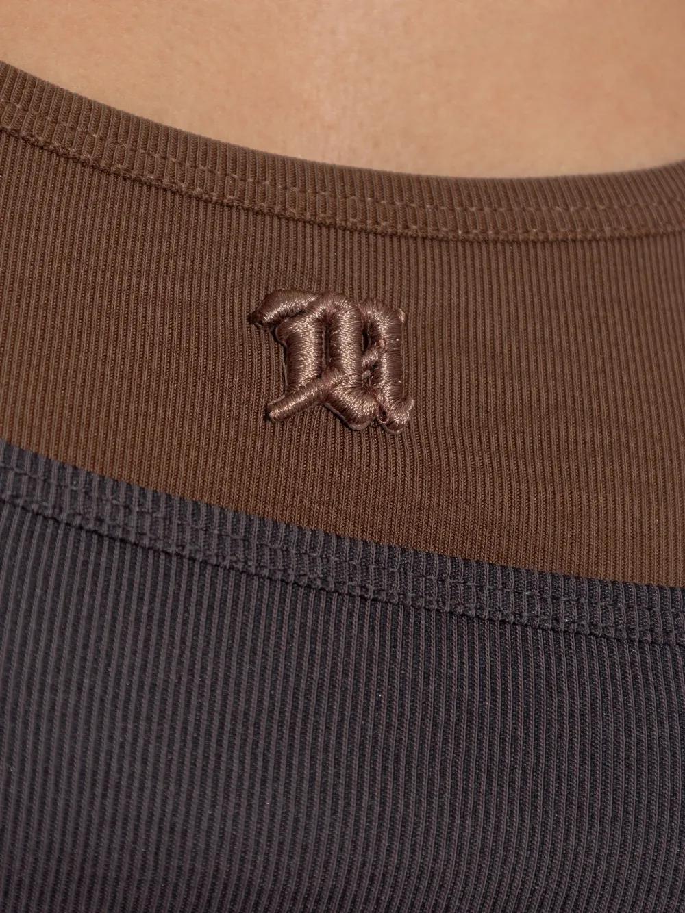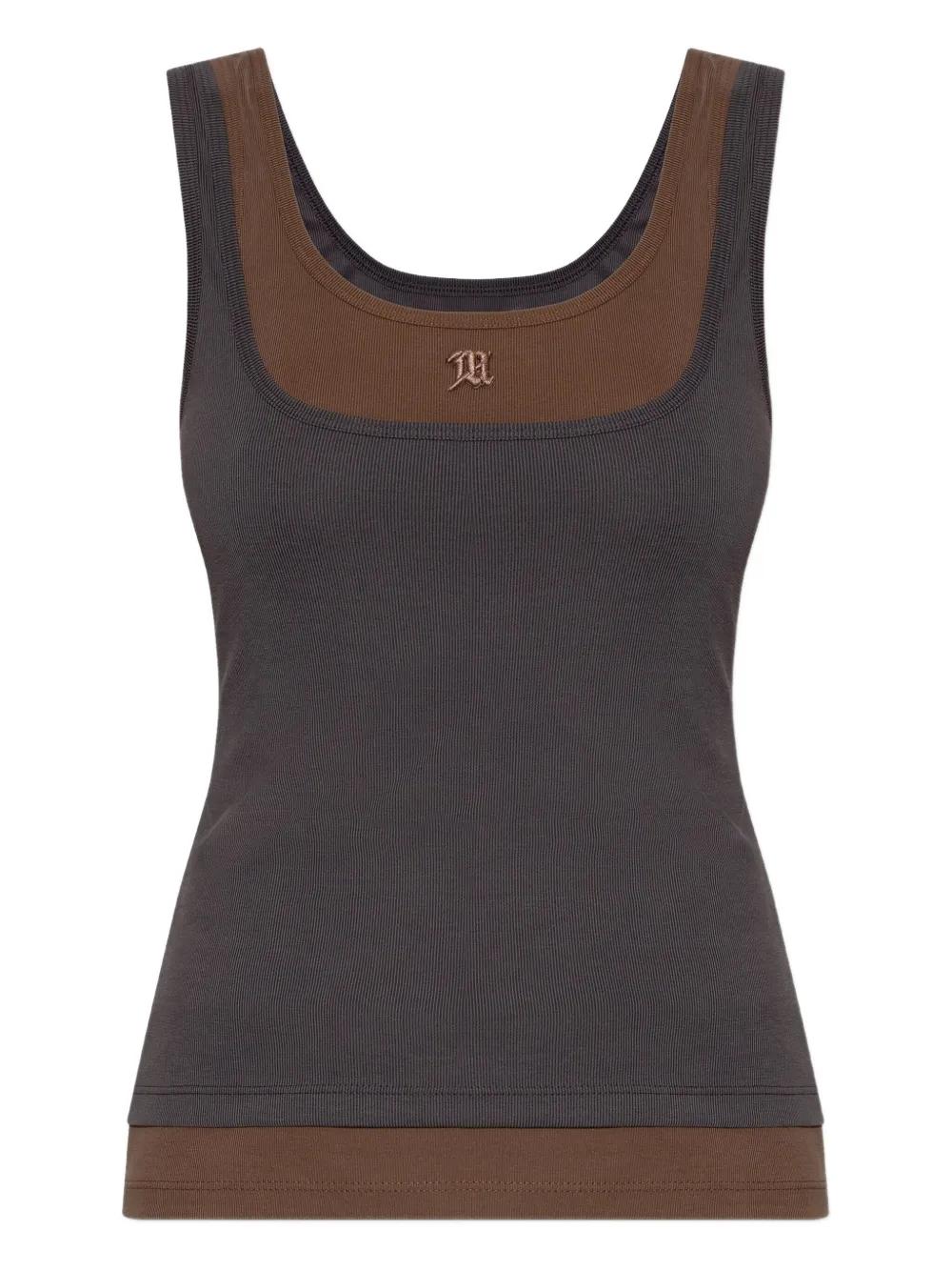 grey embroidered detail layered design ribbed knit scoop neck sleeveless