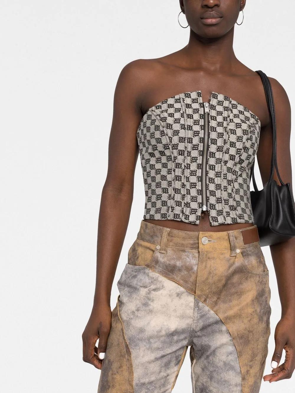 MISBHV monogram jacquard corset top - Neutrals