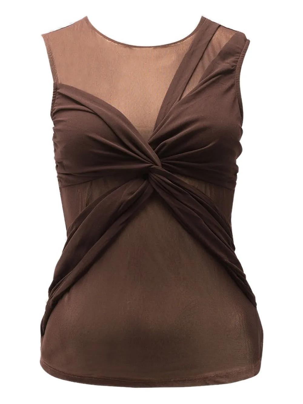 chalk white crinkled finish satin finish scoop neck V-back sleeveless straight hem