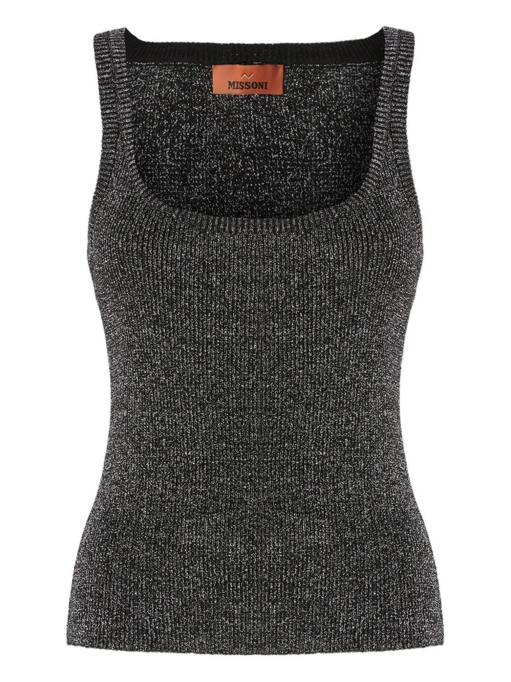 black metallic effect ribbed knit sleeveless scoop neck The item you receive may differ slightly from the item photographed. This is due to the artisanal nature with which all Missoni products are constructed.