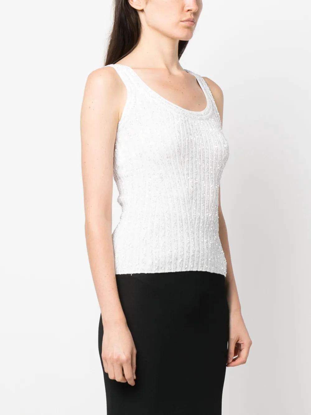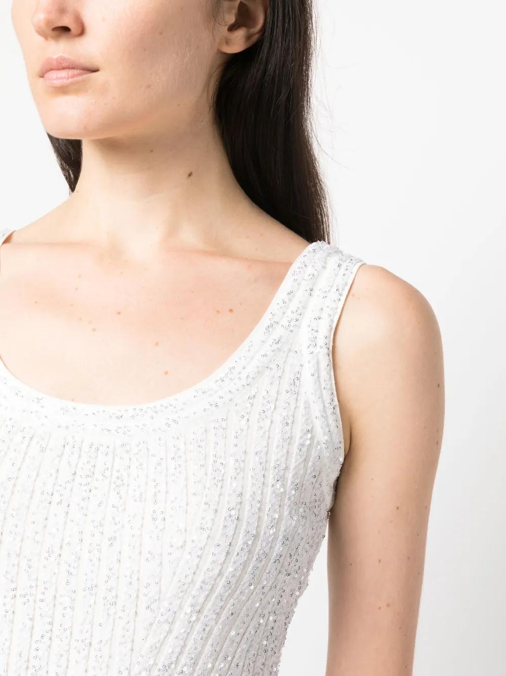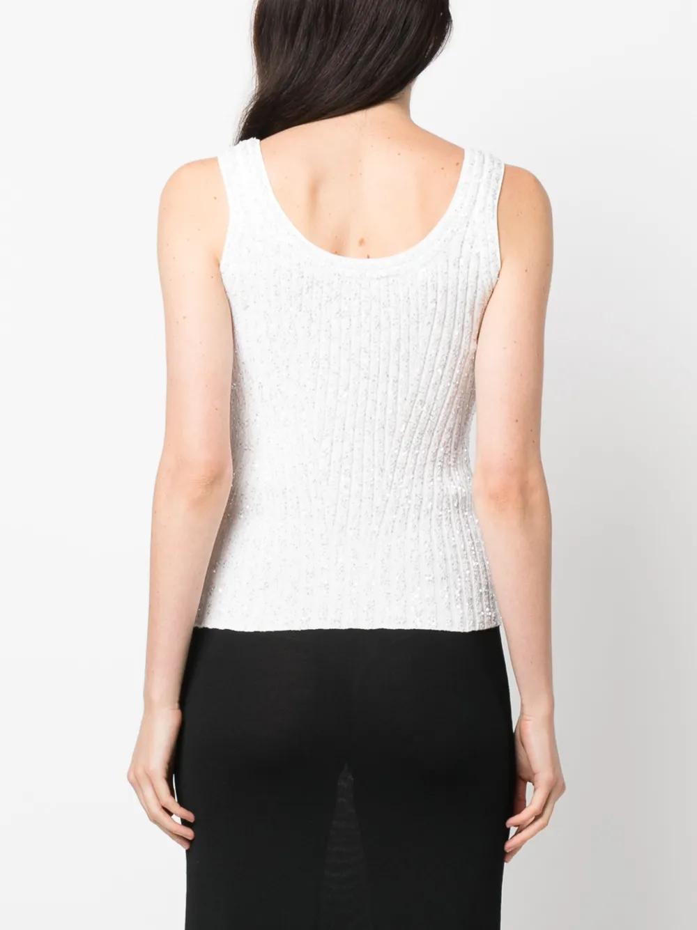 white ribbed knit sequin embellishment scoop neck scoop back sleeveless straight hem The item you receive may differ slightly from the item photographed. This is due to the artisanal nature with which all Missoni products are constructed.