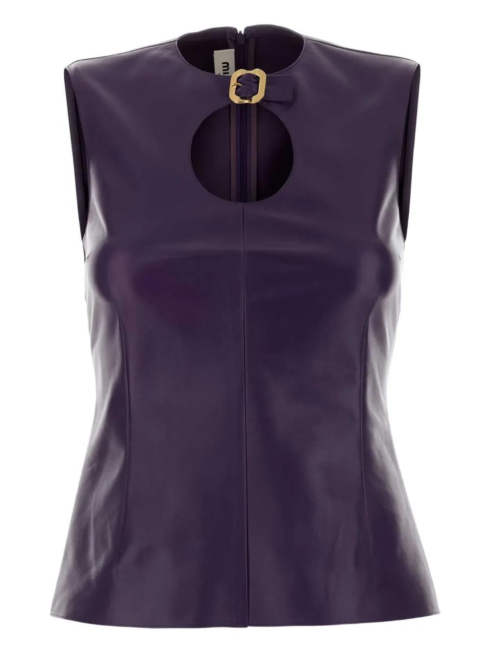 Miu Miu cut-out detailing leather top - Purple