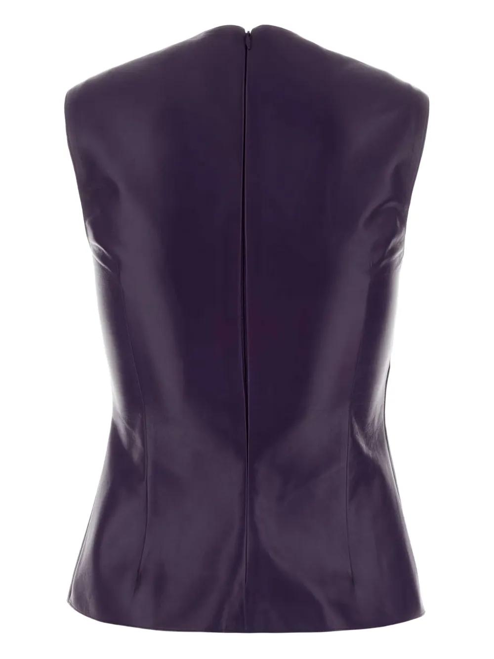 dark purple sleeveless gold-tone hardware round cut-out rear zip fastening leather