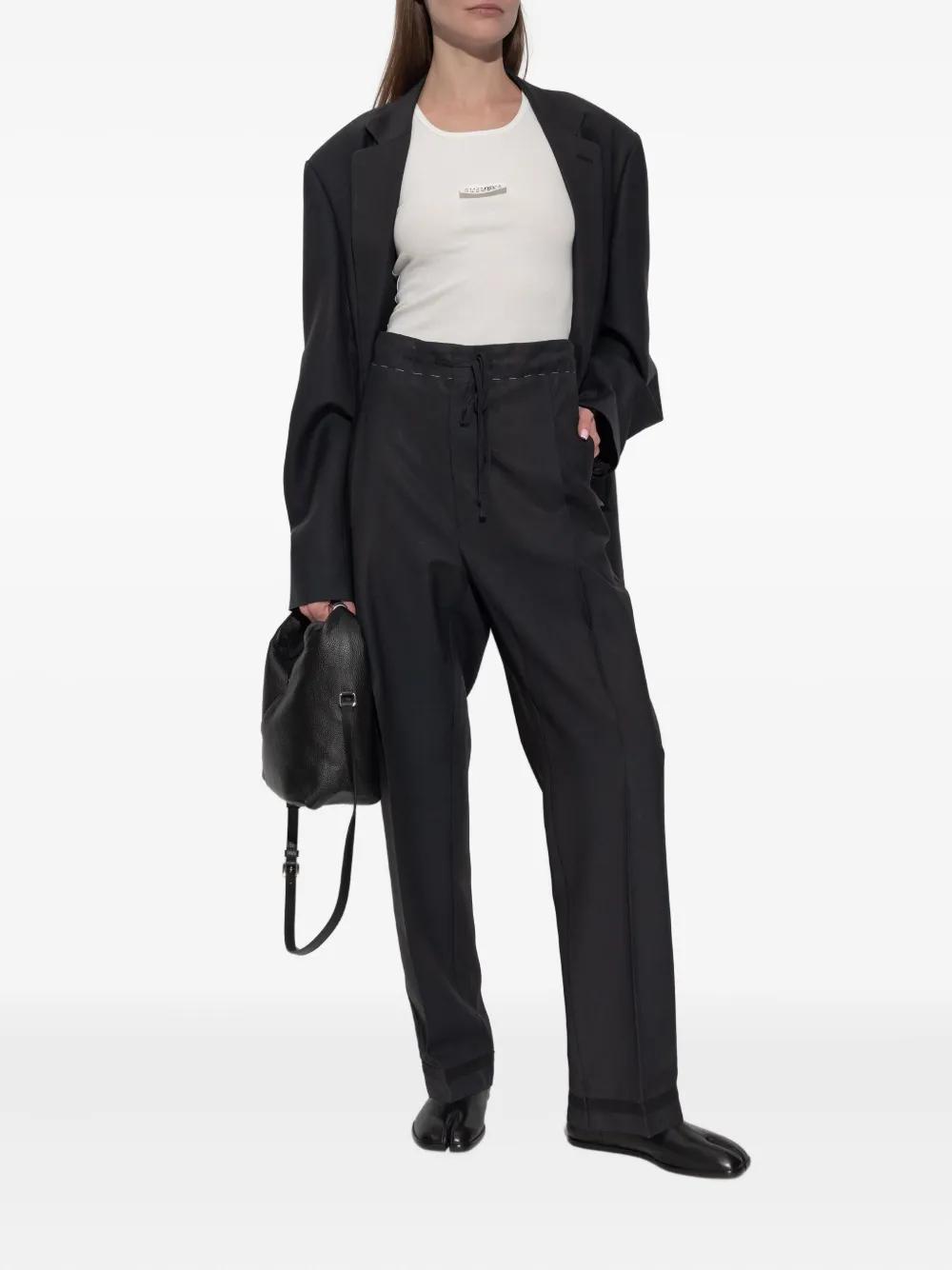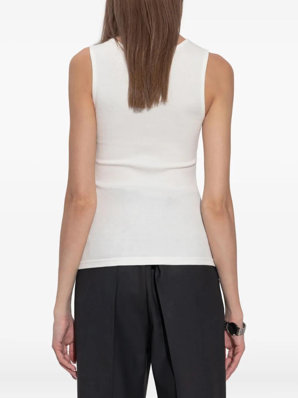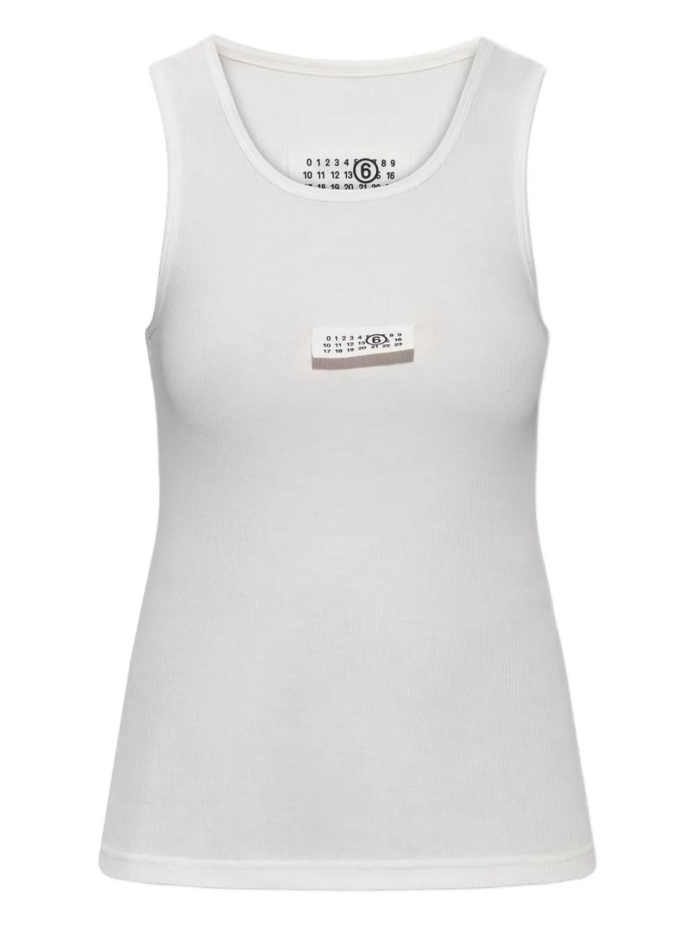 black V-neck wide shoulder straps appliqué logo sleeveless