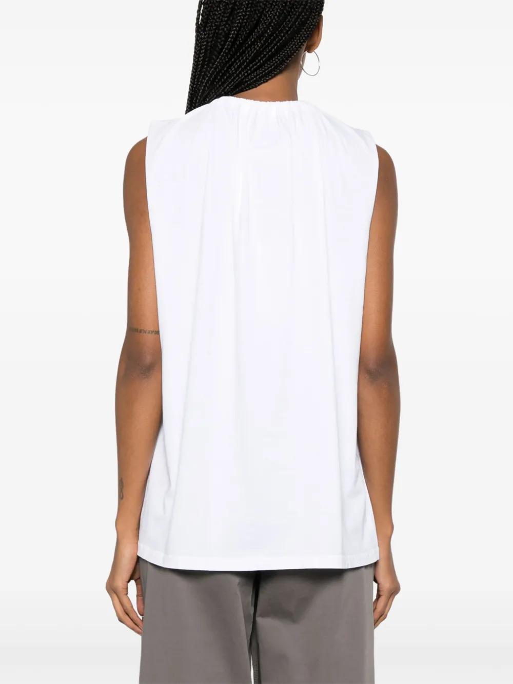 white cotton jersey texture gathered detailing pleat detailing crew neck sleeveless straight hem