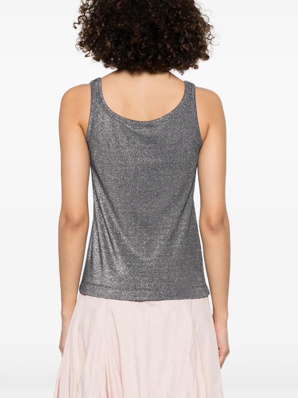 steel blue short front button fastening rounded collar sleeveless lurex detailing