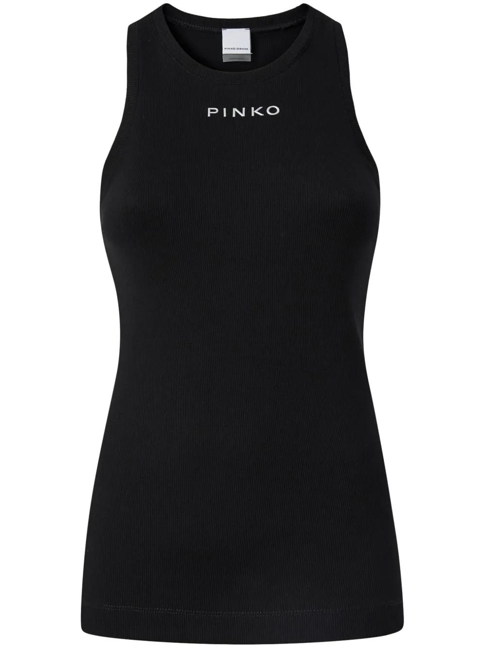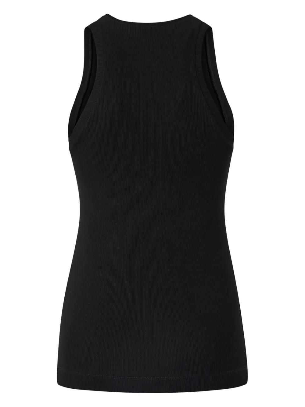 black rounded neckline sleeveless design contrasting trim all-over pattern lightweight feel