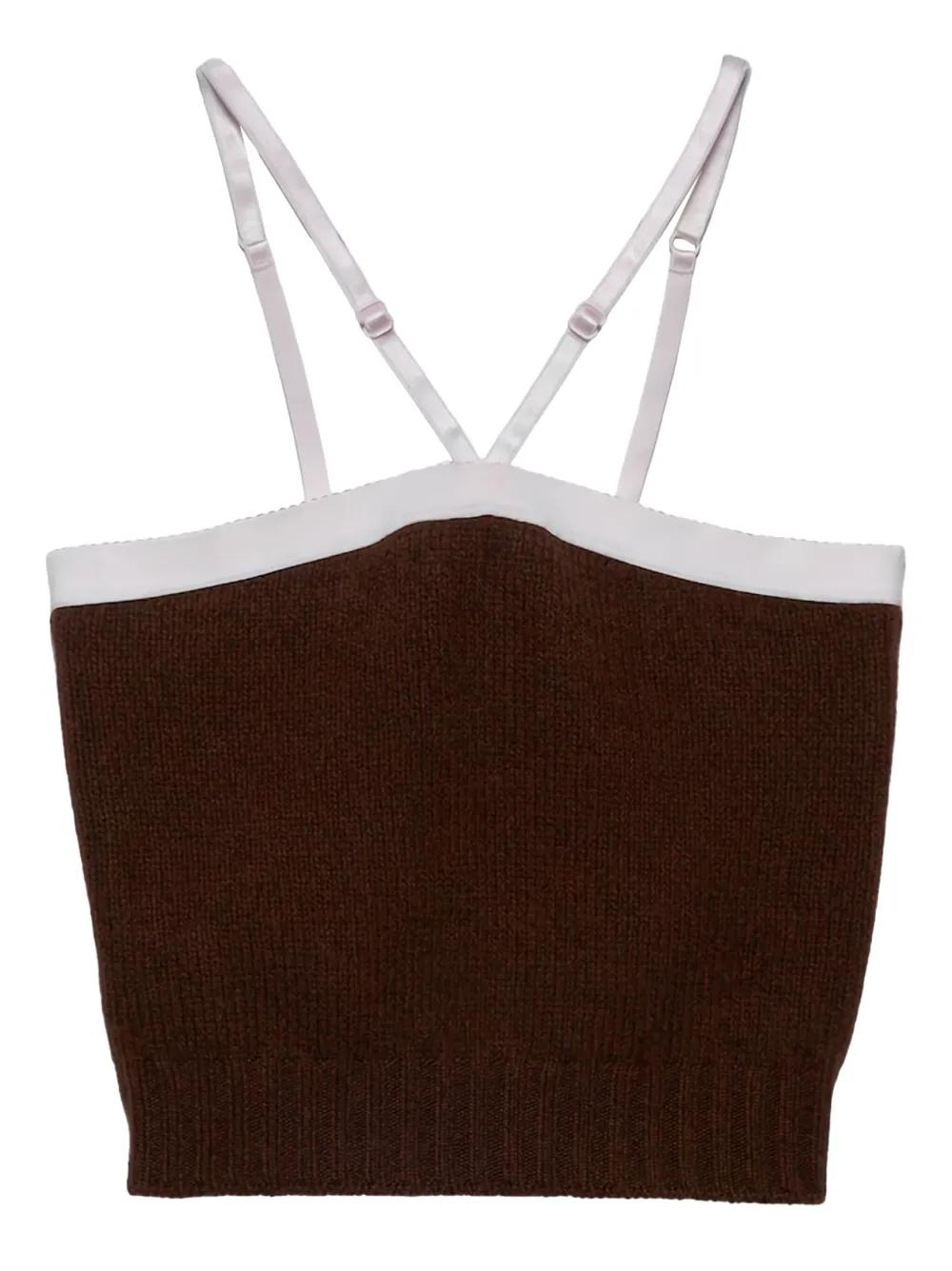 Prada satin-trimmed top - Brown