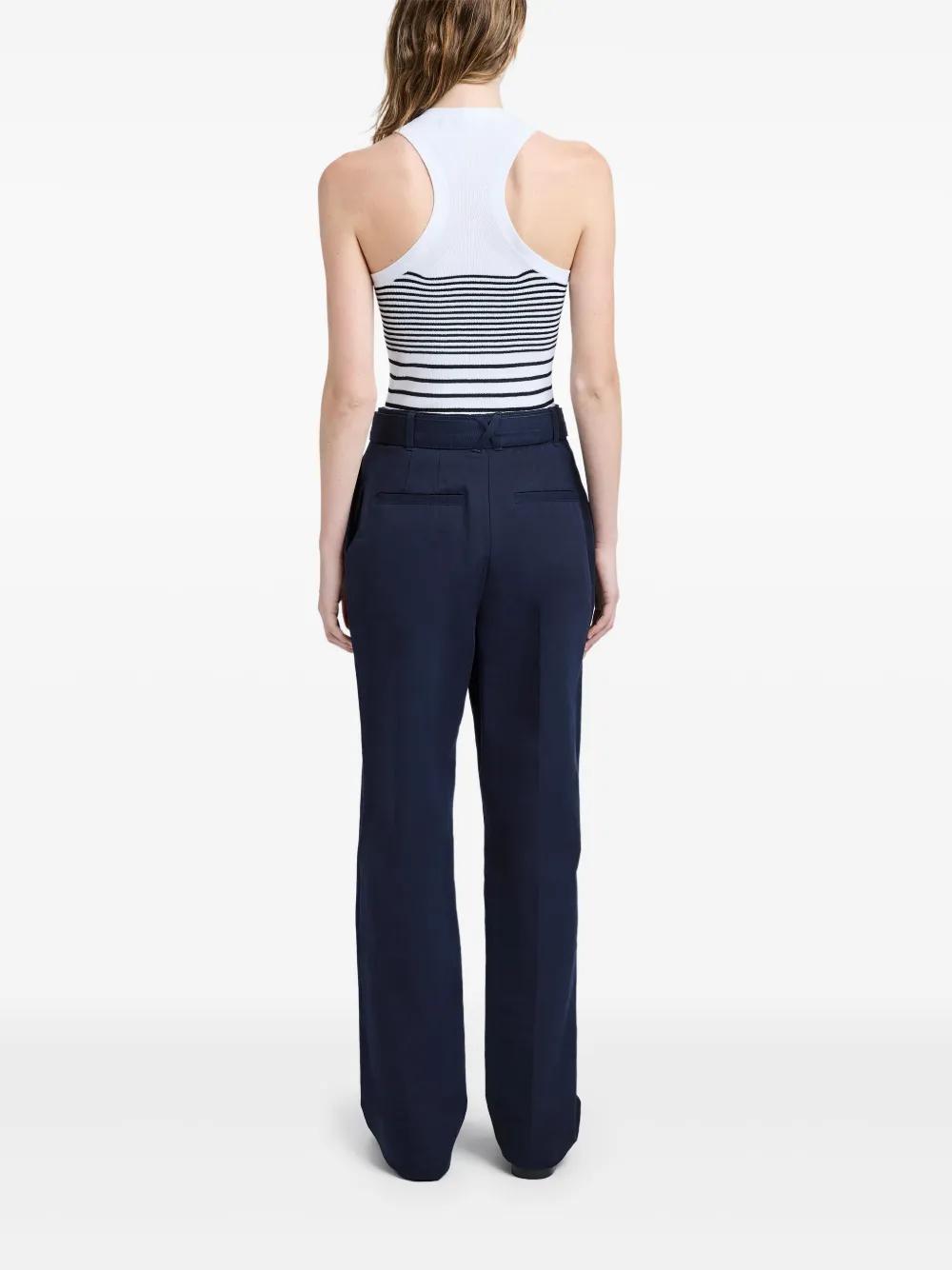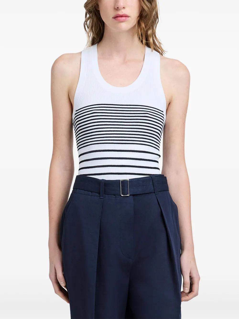 white scoop neck racerback sleeveless horizontal stripe pattern