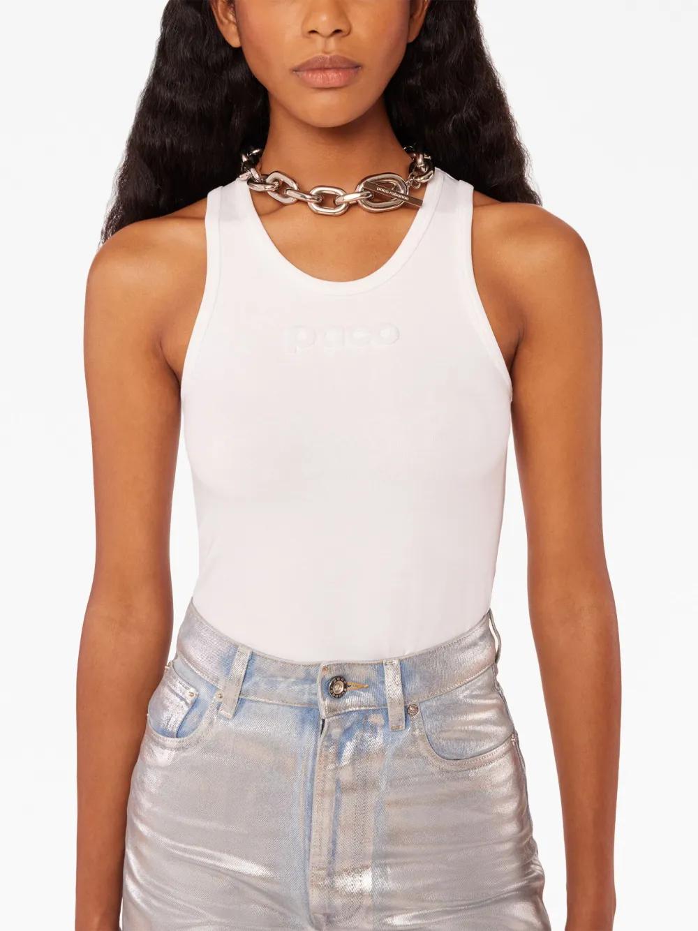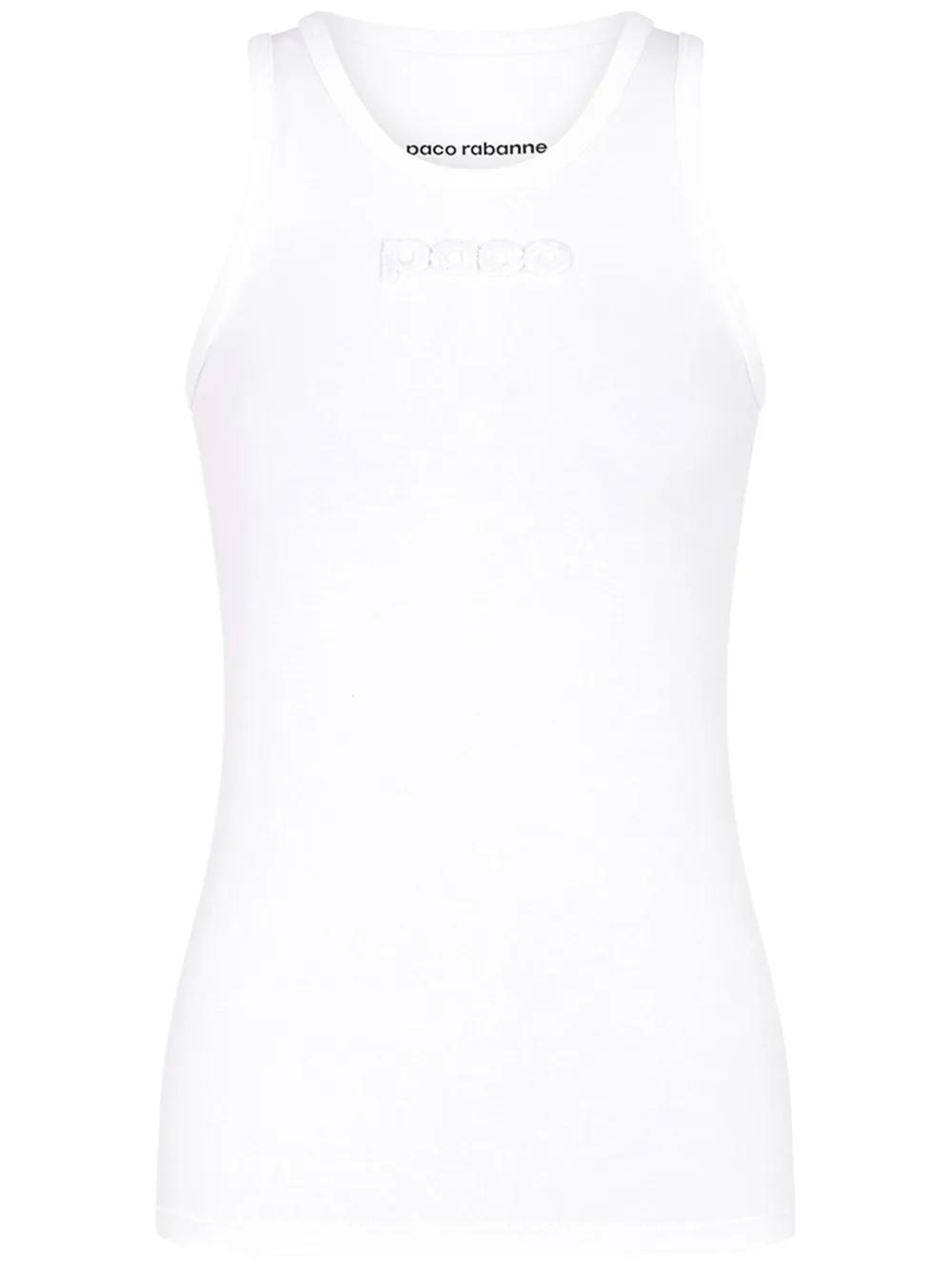 Rabanne logo-devoré cotton tank top - White